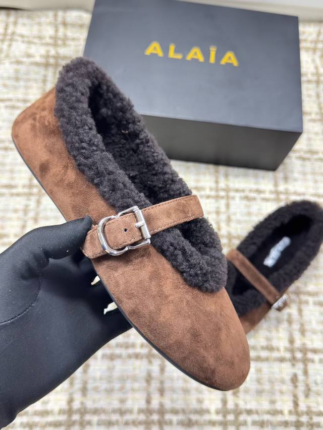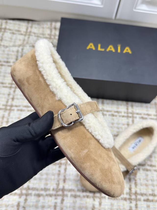 25年新款Alaia阿莱亚法式芭蕾舞单鞋平底鞋毛毛鞋 Alaia大热门平底鞋,好看又好穿 今年超火的Alaia玛丽珍毛毛鞋!明星人手一双。超舒服好穿的平底鞋!