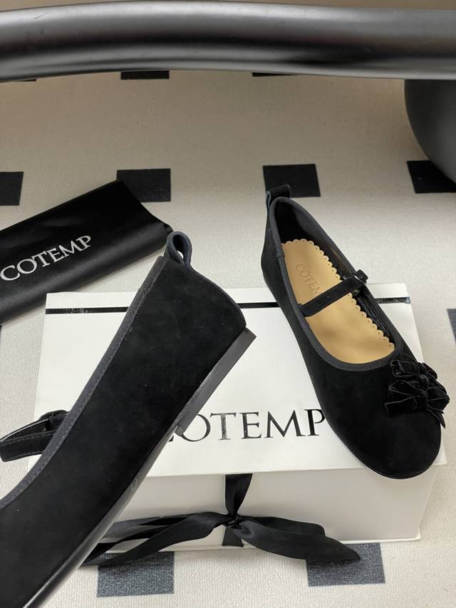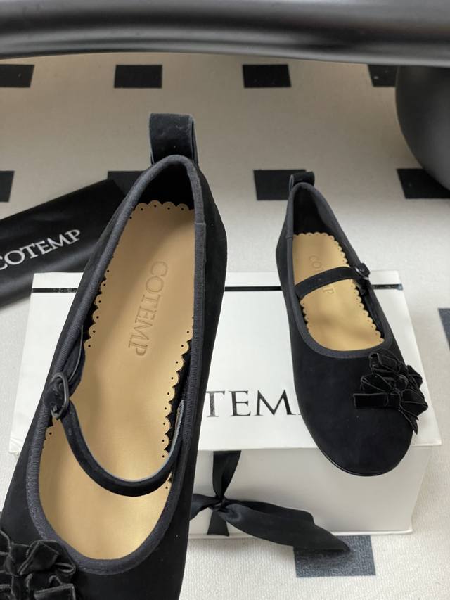 25Ss早秋新款Cotemp 麂皮奶奶鞋丝绒蝴蝶结平底单鞋轻便芭蕾舞鞋一字带玛丽珍鞋