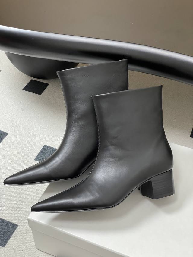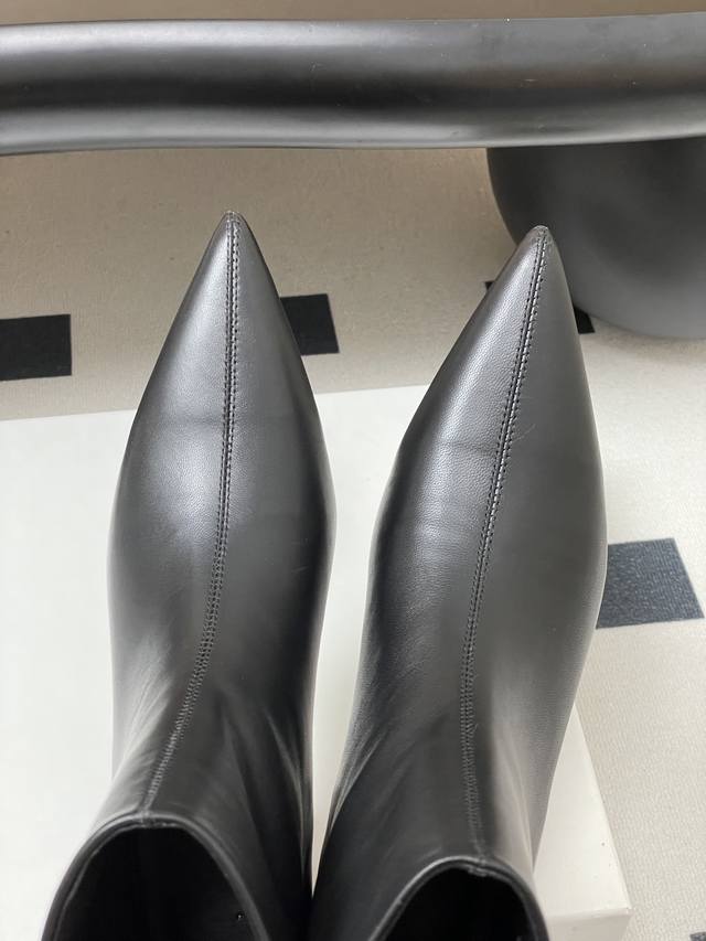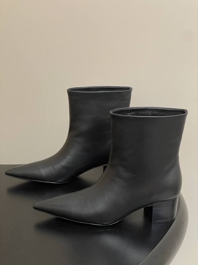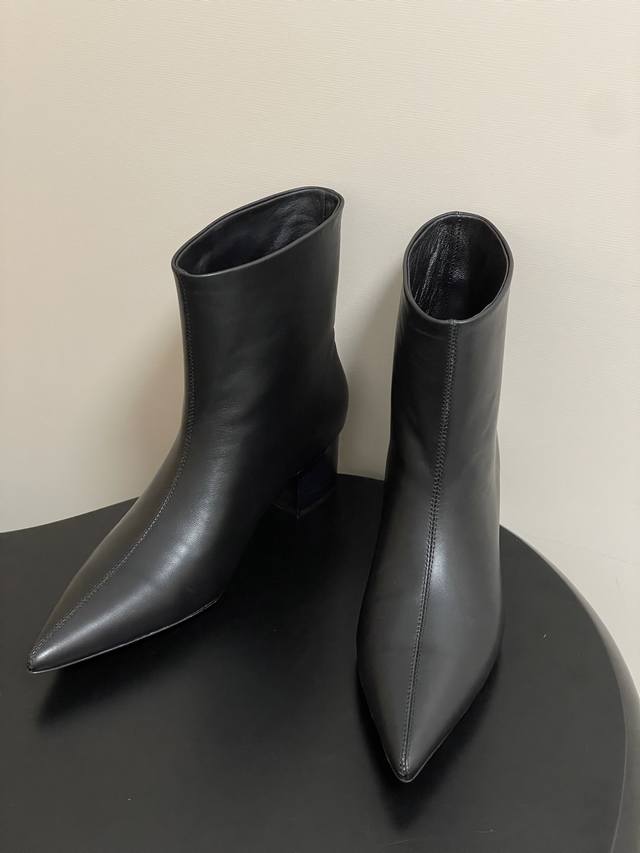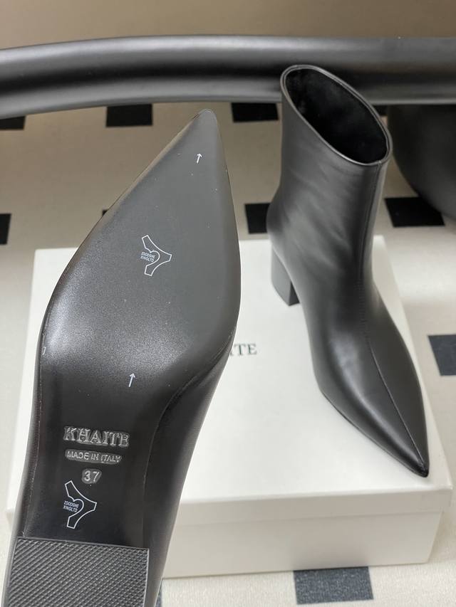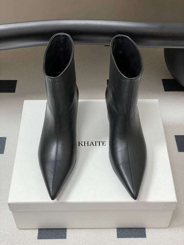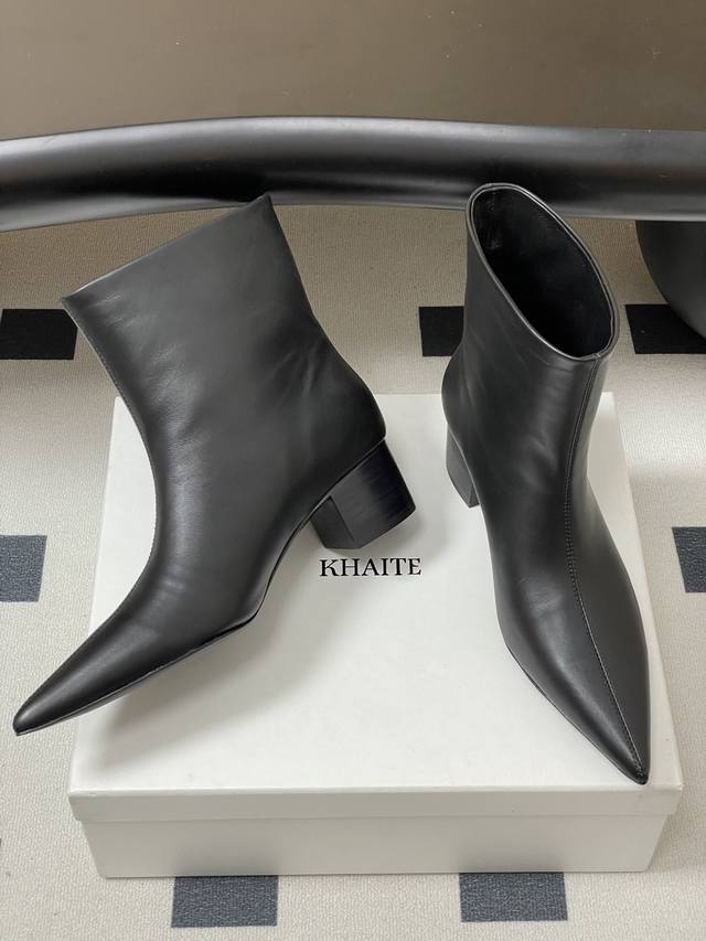 25Ss秋冬新款Khaite 小众潮牌尖头短靴绝美粗跟裸靴