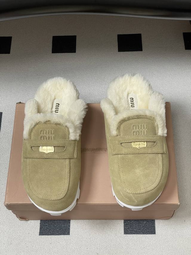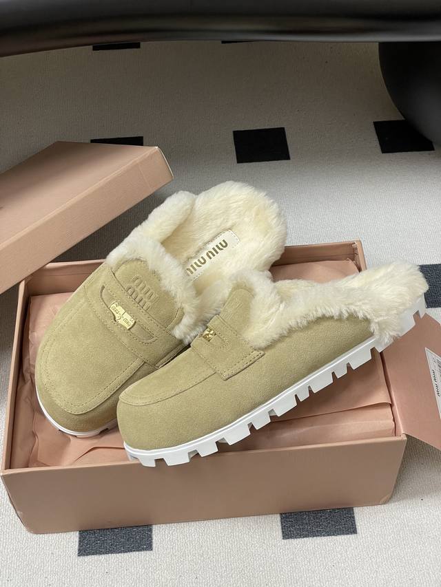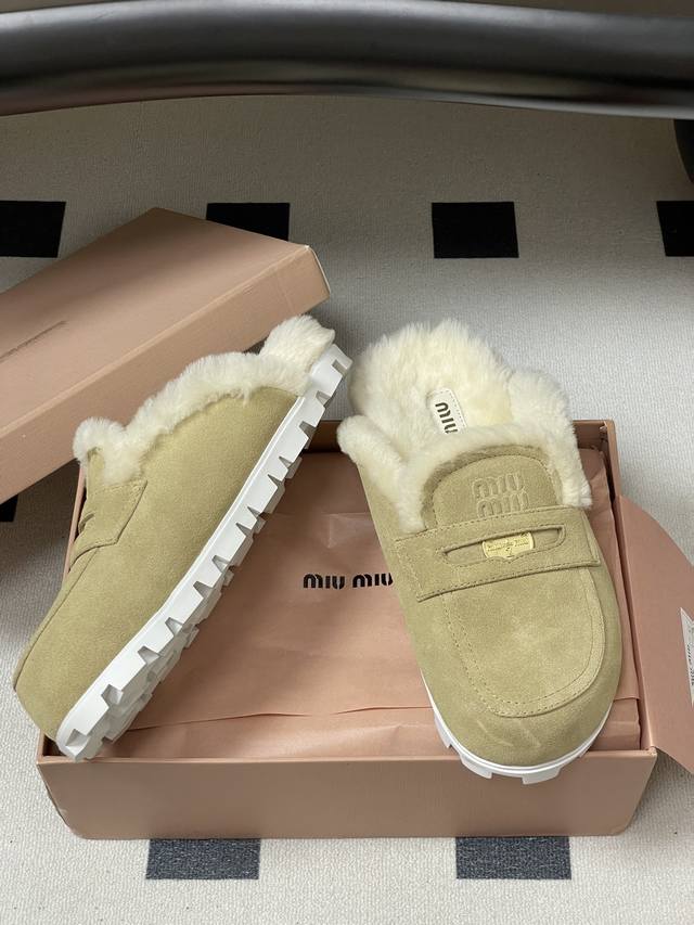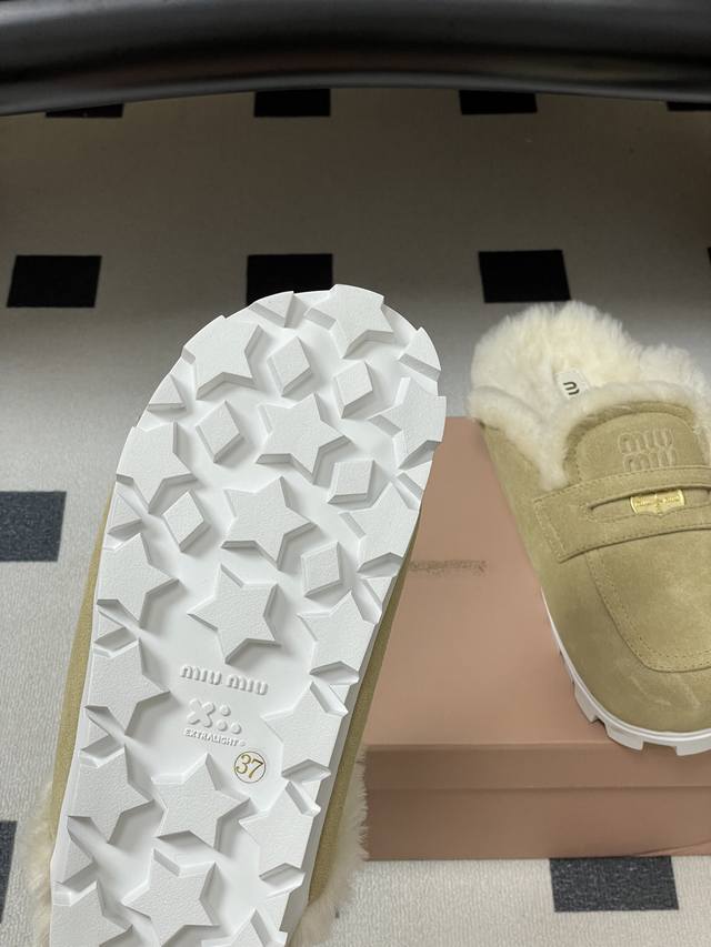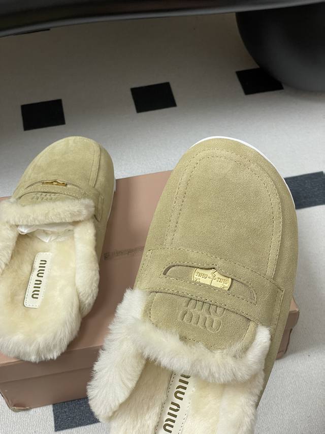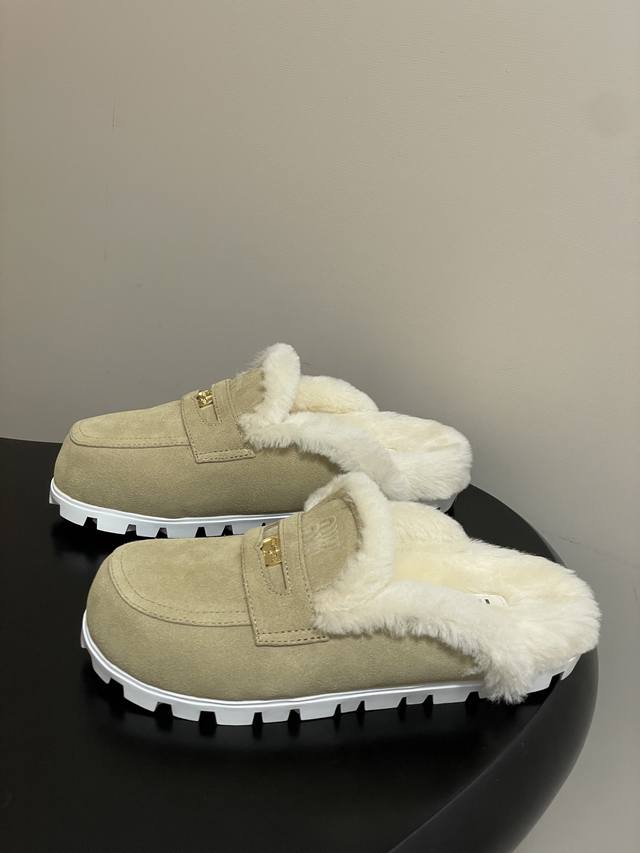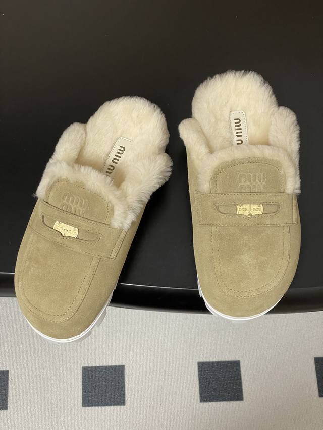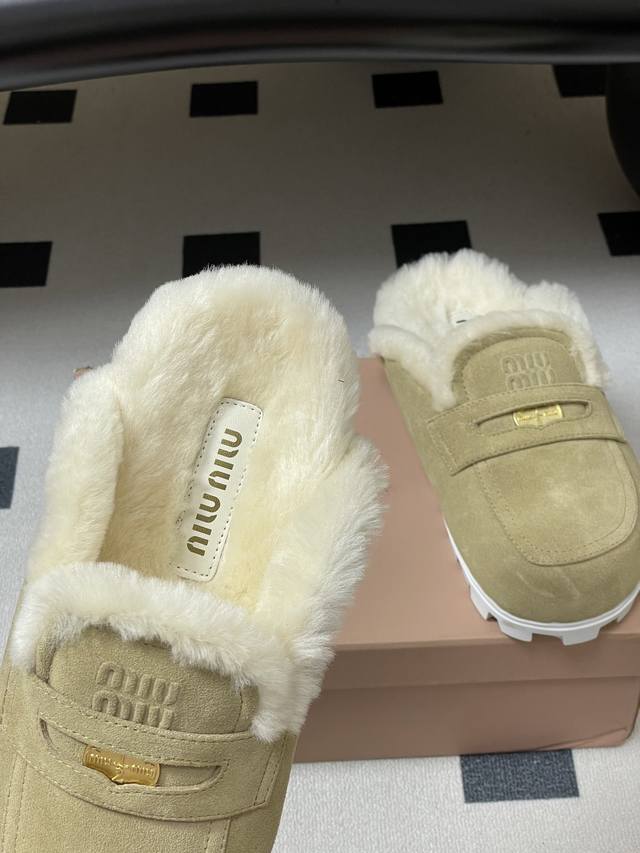 25Ss秋冬新款Miu Miu 缪缪 经典金币包头羊毛穆勒鞋一脚蹬厚底懒人勃肯毛毛鞋 今年很火很流行的金币乐福鞋元素,M家玩味经典风格与复古灵感,塑就此款包头毛