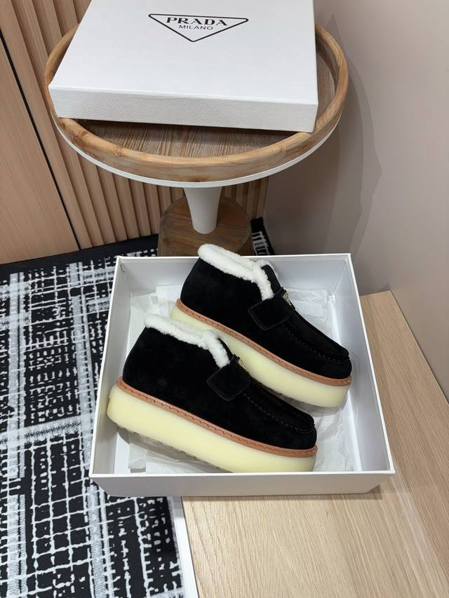 25Ss秋冬新款prada三角标厚底短靴系带雪地靴 Ddd 这款简约厚底毛里短靴取材羊羔毛打造。新意迭出的三角形徽标重释为经典元素! Ddd 鞋面:双色擦色牛绒 Ddd 内里:真羊羔毛 Ddd 鞋底:Tpu鞋底 真皮沿条 Ddd 码数:35-39 40,41定制不退换 DDD