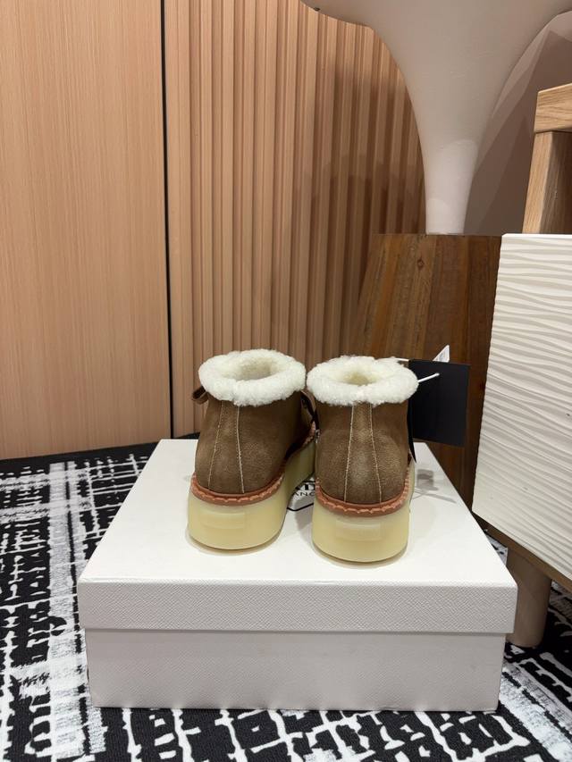 25Ss秋冬新款prada三角标厚底短靴系带雪地靴 Ddd 这款简约厚底毛里短靴取材羊羔毛打造。新意迭出的三角形徽标重释为经典元素! Ddd 鞋面:双色擦色牛绒 Ddd 内里:真羊羔毛 Ddd 鞋底:Tpu鞋底 真皮沿条 Ddd 码数:35-39 40,41定制不退换 DDD