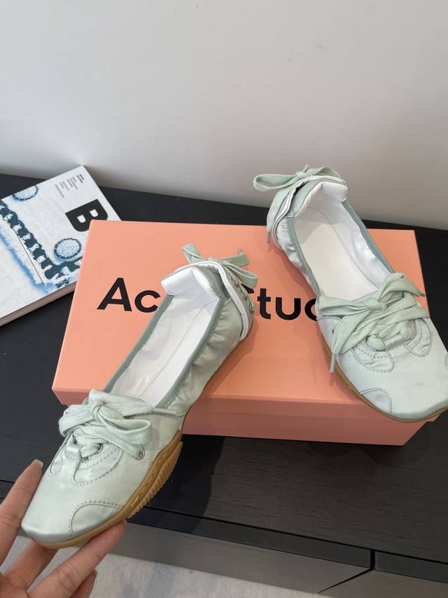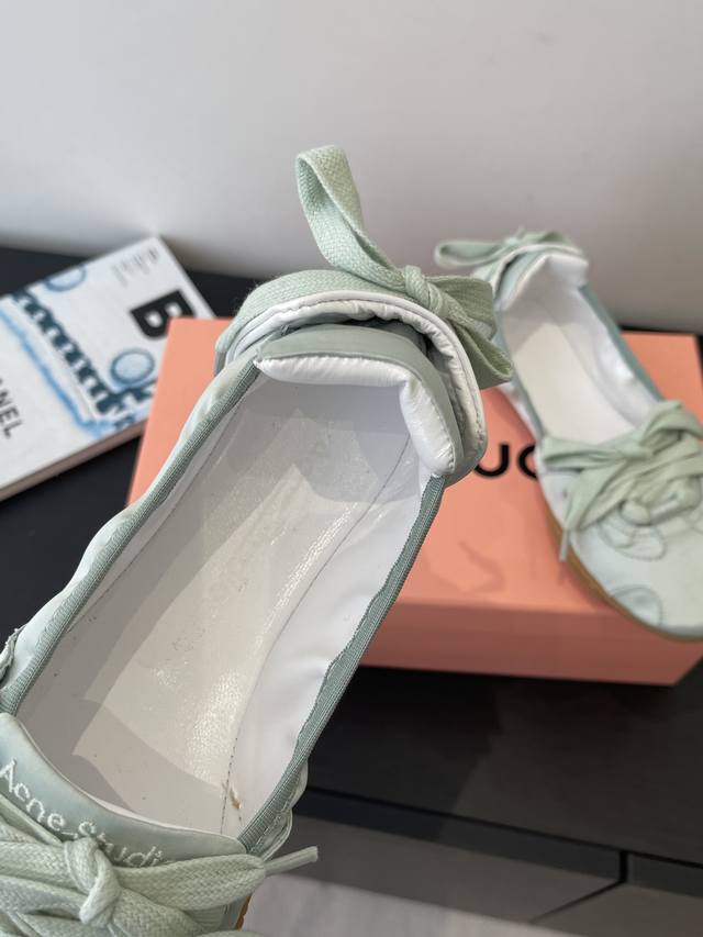 2670新色系!Acne Studios 新款芭蕾舞运动鞋 Acne Studios将运动鞋与当下热门的芭蕾舞鞋元素结合首次推出芭蕾舞运动鞋 Ddd 整双鞋也参考了芭蕾舞女演员真实穿的足尖鞋 打造前半段的绑带设计 脚后跟的地方也有交叉绑带 船型鞋身 窄长楦头等等 都和足尖鞋有几分相似 Ddd 鞋面采用带有纹路的饰面皮革制成 鞋后方还有精致的装饰性绑带 搭配无缝橡胶鞋底 是一双兼具浪漫与街头感的平底鞋码数:35-40 40定做 DDD