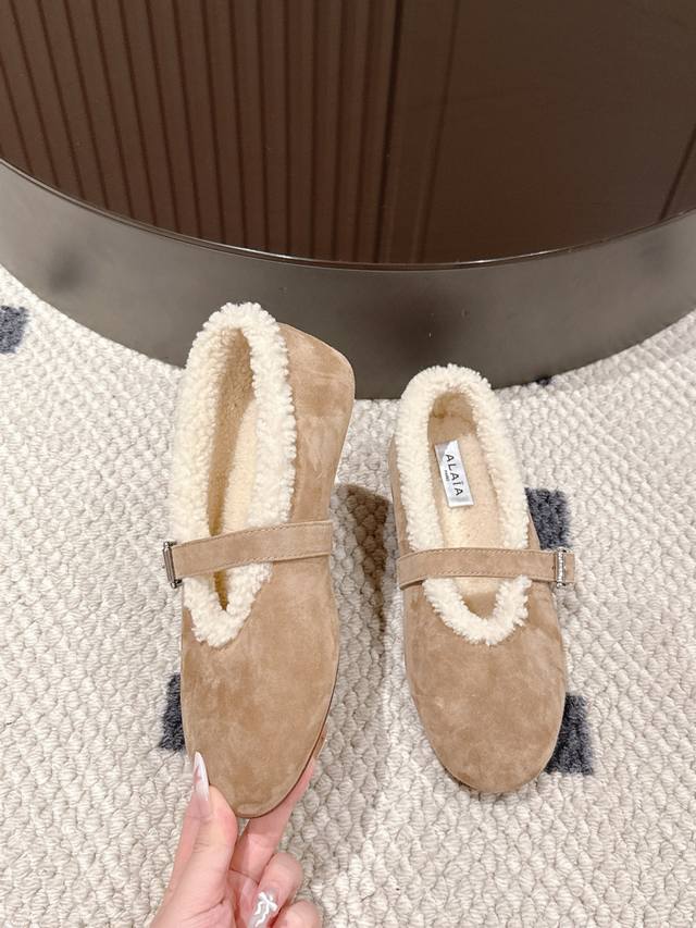 / 35-40 41定做 2025 Alaia爆款玛丽珍来啦!冬天也能把玛丽珍穿得又暖又美 谁是玛丽珍控?看到这双直接走不动路!羊毛内里软乎乎的,把脚裹在温暖里,麂