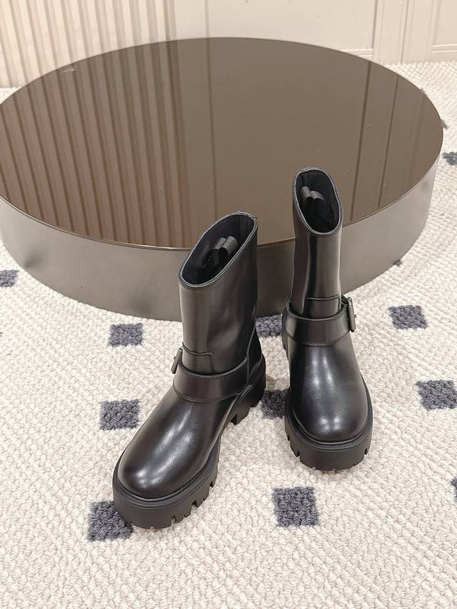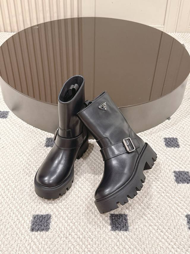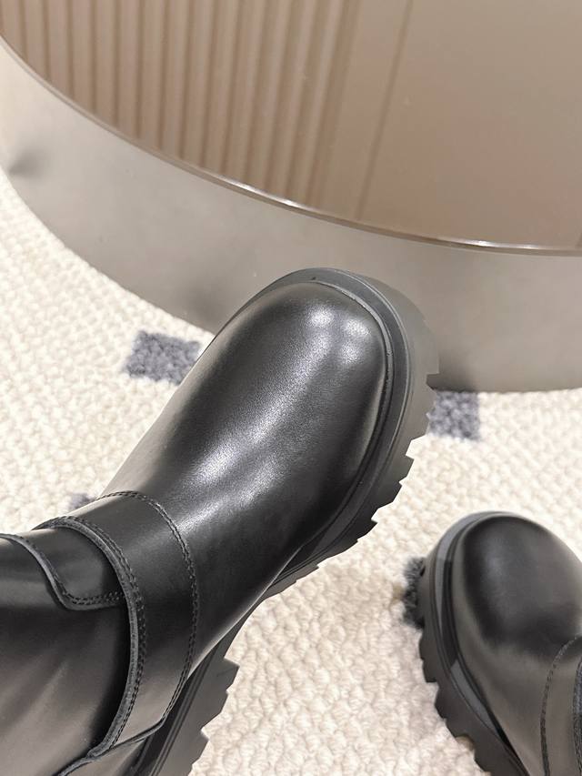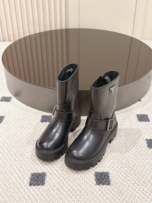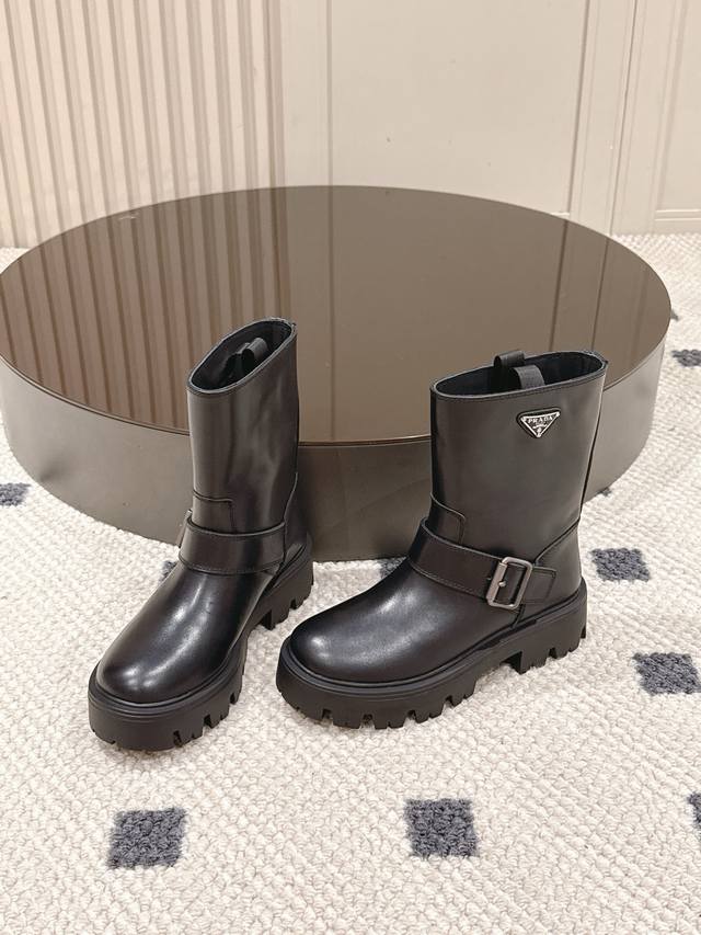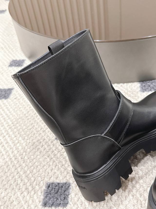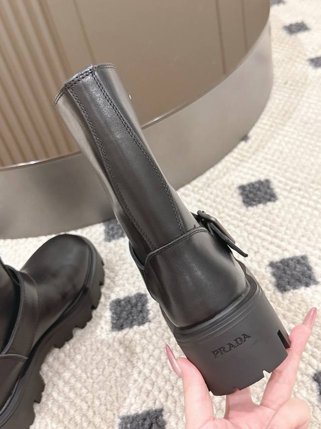 35-40 41定做 DDD prada 2025 新款厚底 5Cm 靴子强势来袭,这谁能忍住不心动! DDD 经典的prada三角标低调又奢华,彰显着品牌独有的格调。厚底设计增加了高度,悄无声息地拉长腿部线条,气场瞬间两米八,走路都带风 。不管是质感上乘的皮革材质,还是柔软亲肤的麂皮材质,每一双靴子都将prada精湛的工艺展现得淋漓尽致。 DDD 酷帅的黑色款,搭配牛仔裤和机车夹克,妥妥的街头潮人;温柔的卡其色、沉稳的棕色,与毛呢大衣、长裙搭配, 尽显优雅气质。靴子上的金属扣设计,增添了几分硬朗与随性,