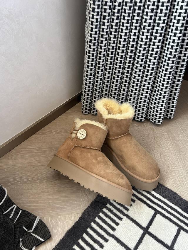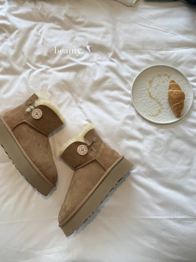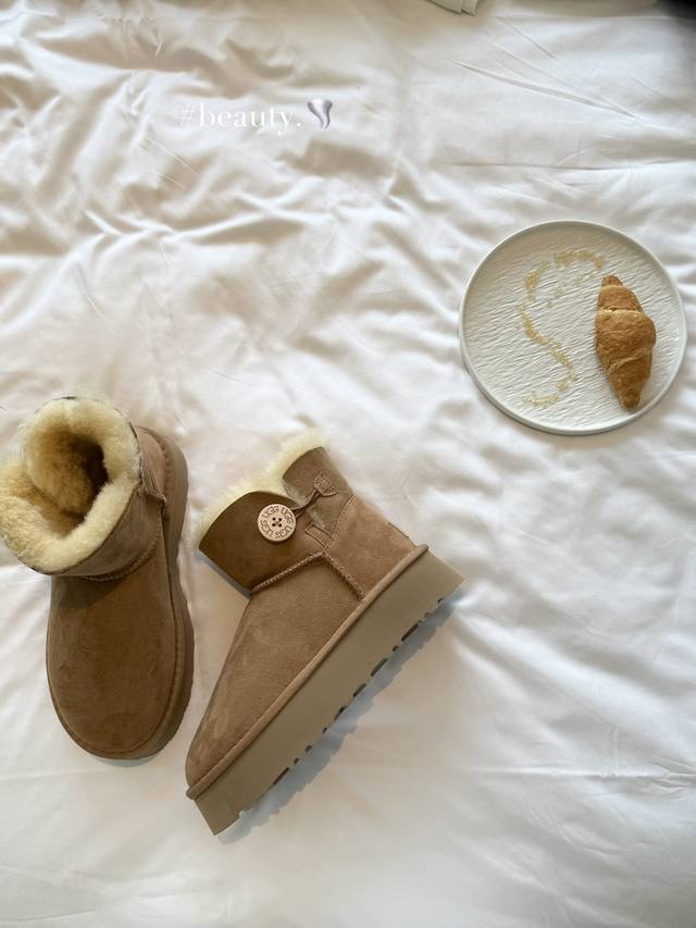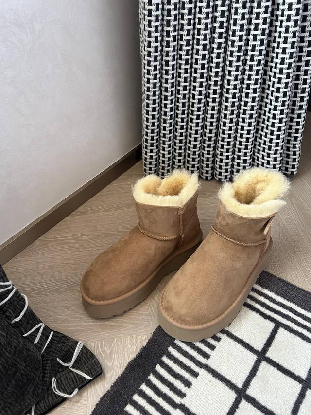 4380皮毛一体厚底 秋冬氛围感,被这双浅棕色雪地靴拿捏住啦~绒面质感高级,内里暖乎乎像裹着云朵,搭配裙装、裤装都很绝,踩上它,从脚暖到心,轻松开启温暖又时髦的