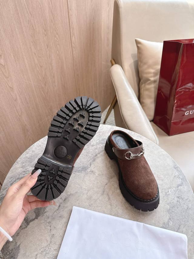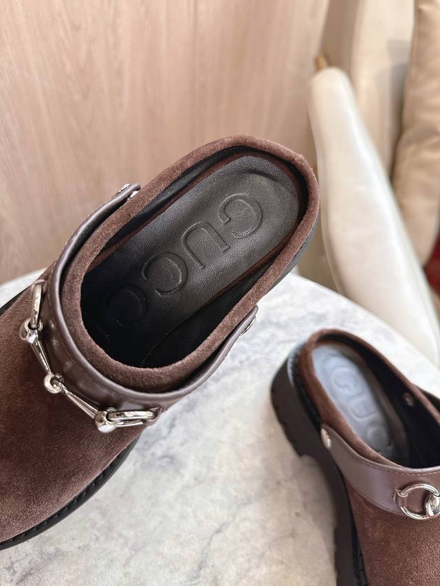 731-3 咖色¥ 35-41 作为对品牌马术本源的致敬之作,马衔扣历经时间洗礼后,将厚重历史底蕴与现代时尚型格融为一体。这款女士穆勒鞋采用光滑绒面材质匠心打造