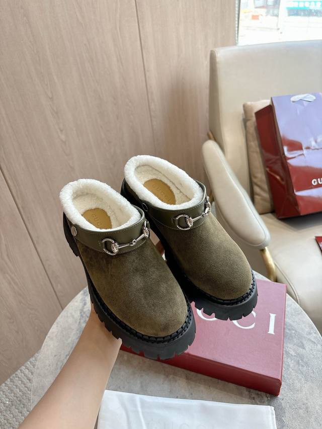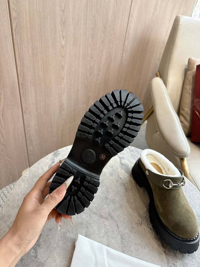 / 731-3A 绿 35-41 作为对品牌马术本源的致敬之作,马衔扣历经时间洗礼后,将厚重历史底蕴与现代时尚型格融为一体。这款女士穆勒鞋采用光滑绒面材质和进口超短