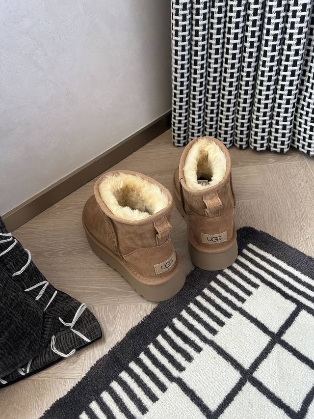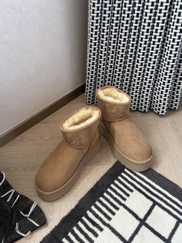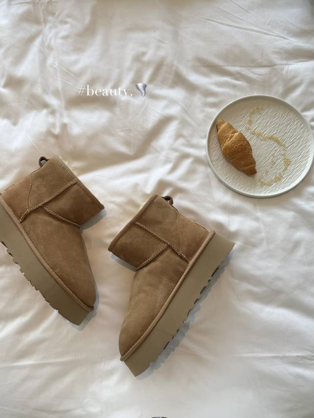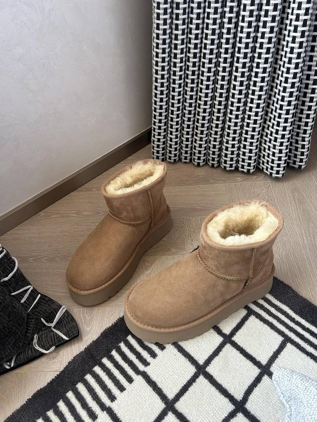 7640皮毛一体厚底 秋冬氛围感,被这双浅棕色雪地靴拿捏住啦~绒面质感高级,内里暖乎乎像裹着云朵,搭配裙装、裤装都很绝,踩上它,从脚暖到心,轻松开启温暖又时髦的