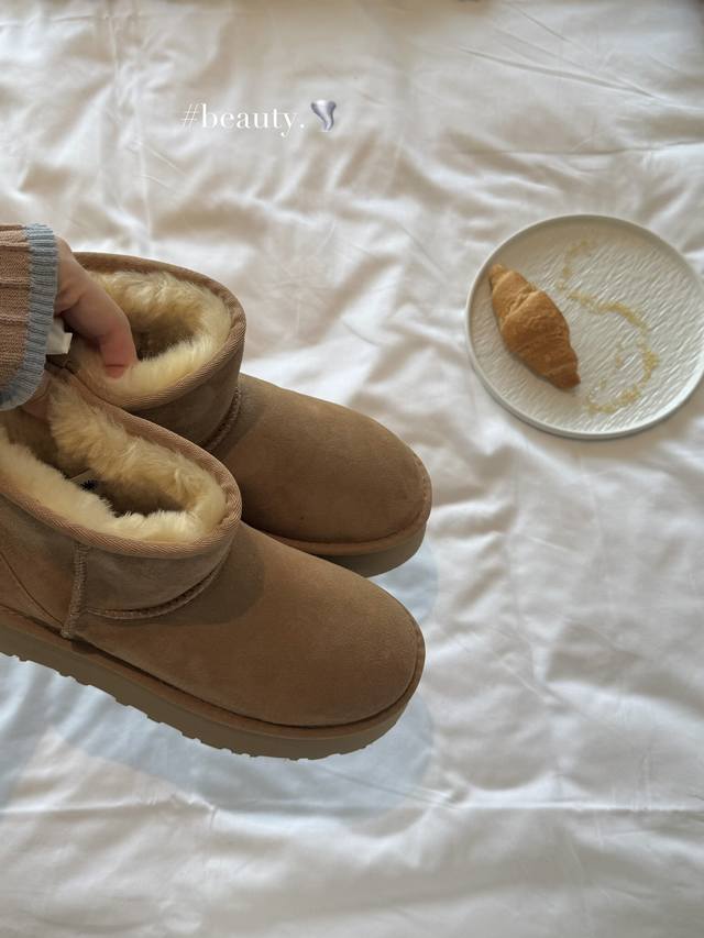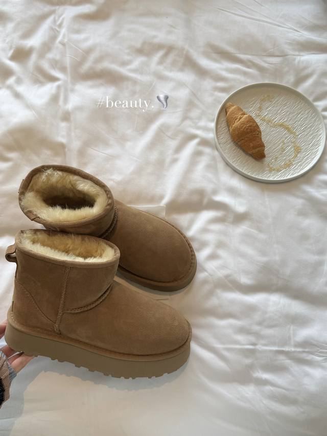 7640皮毛一体厚底 DDD 秋冬氛围感,被这双浅棕色雪地靴拿捏住啦~绒面质感高级,内里暖乎乎像裹着云朵,搭配裙装、裤装都很绝,踩上它,从脚暖到心,轻松开启温暖又时髦的季节~栗色35-40 ! DDD