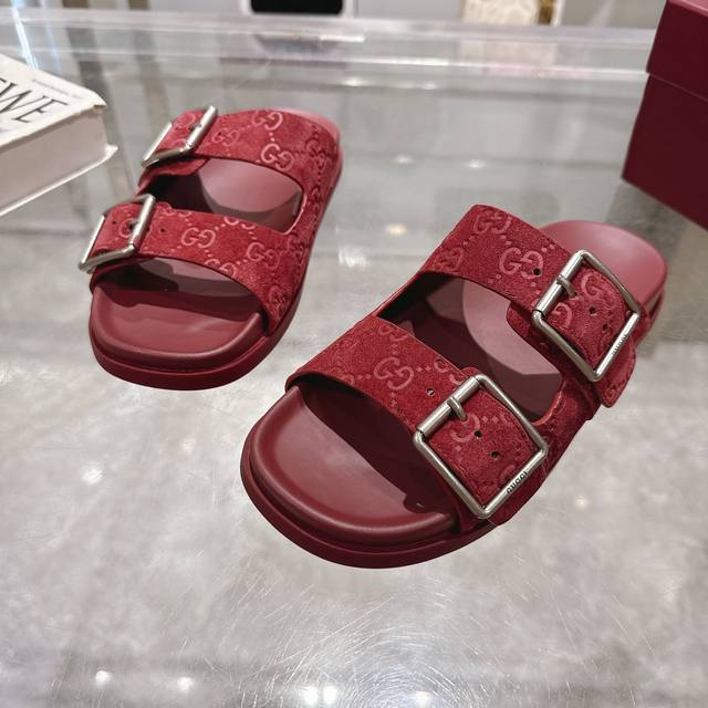 8838-5 酒红 35-42 这款个性十足的鞋履以优质Gg羊皮革匠心打造,集品牌典藏设计与现代优雅格调于一体。这款凉鞋缀饰标志性双G配件,尽显经典魅力与品牌格