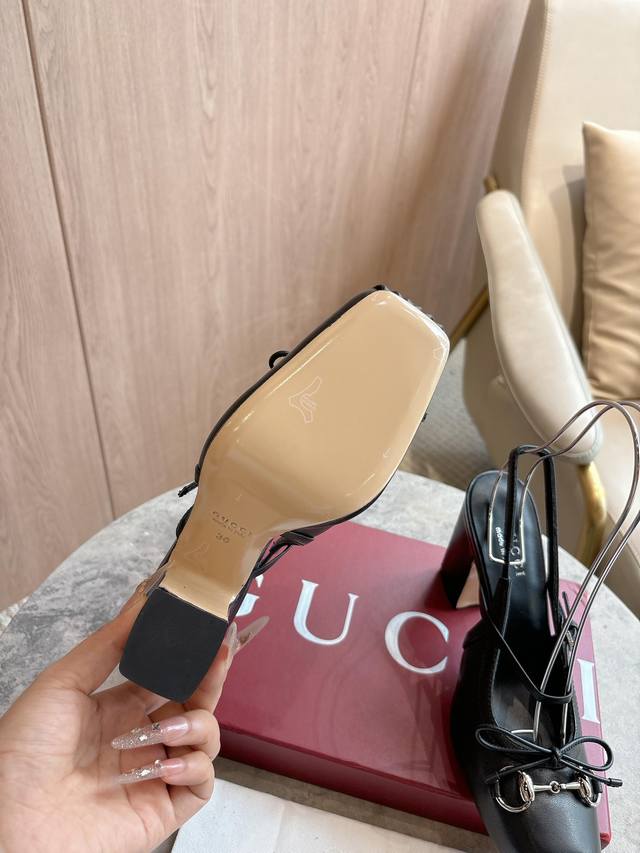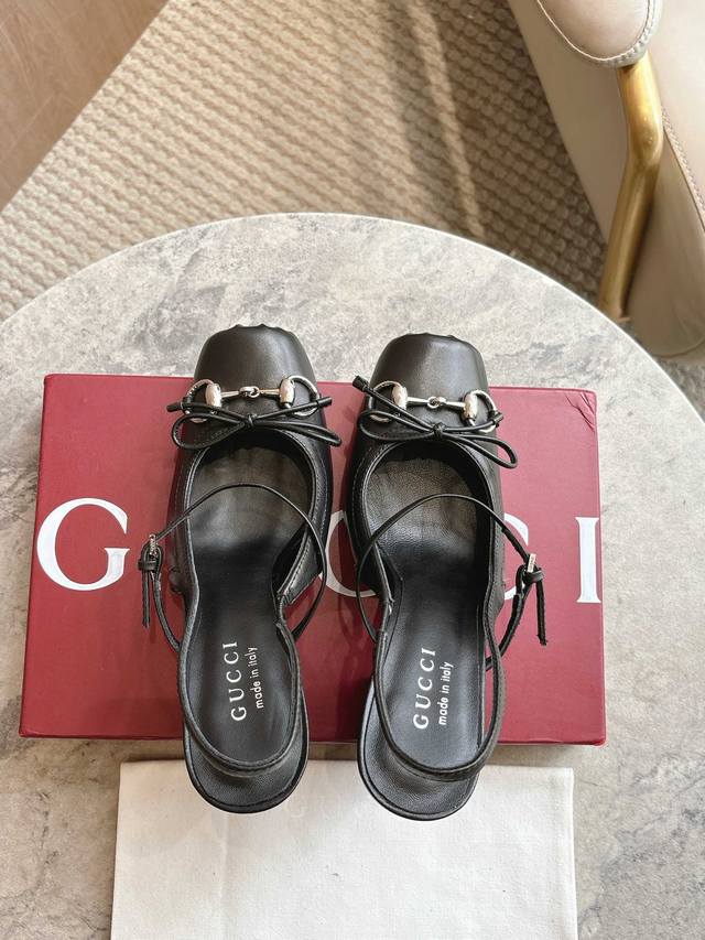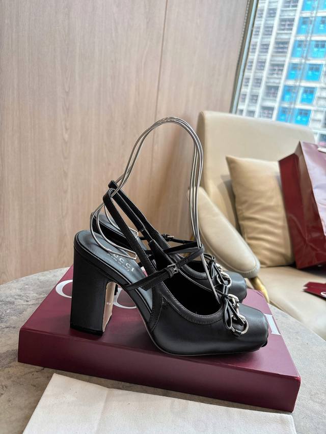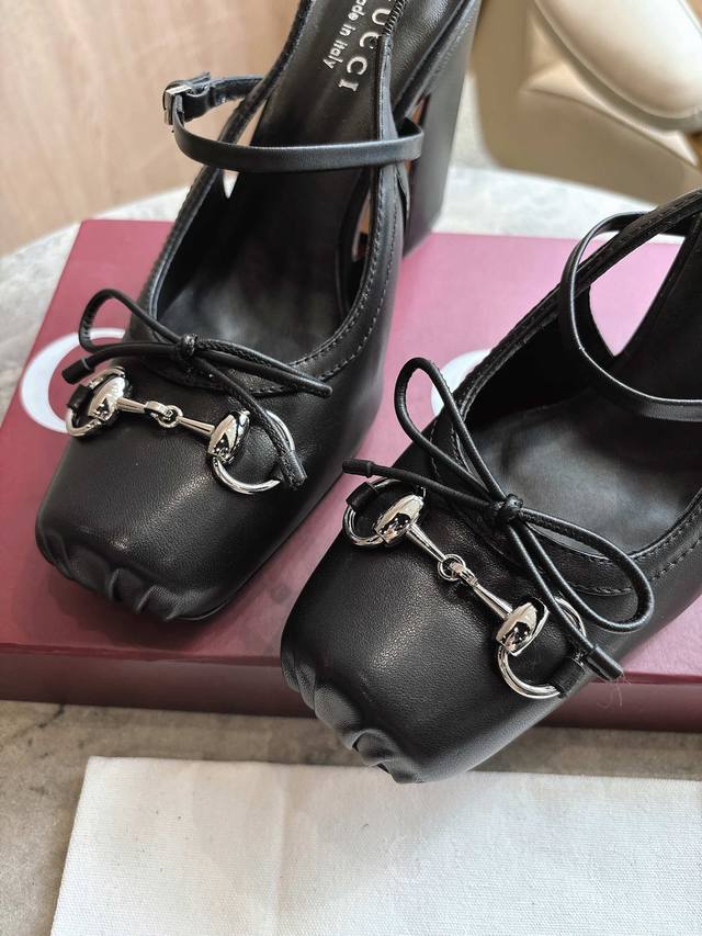 / 918-1 黑 35-42 2025秋冬系列, 这款马衔扣后系带浅口鞋选用方形收口鞋头设计,搭配雅致的蝴蝶结细节,致敬传统芭蕾舞鞋款型。这款单品以皮革匠心打造,