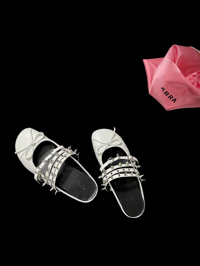 拖鞋款来啦~酷飒与甜美并存的玛丽珍鞋来袭 俏皮蝴蝶结搭配个性铆钉元素打破常规 走路间释放不羁态度穿轻松拿捏甜酷时髦感