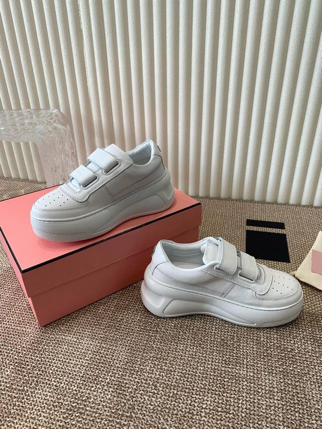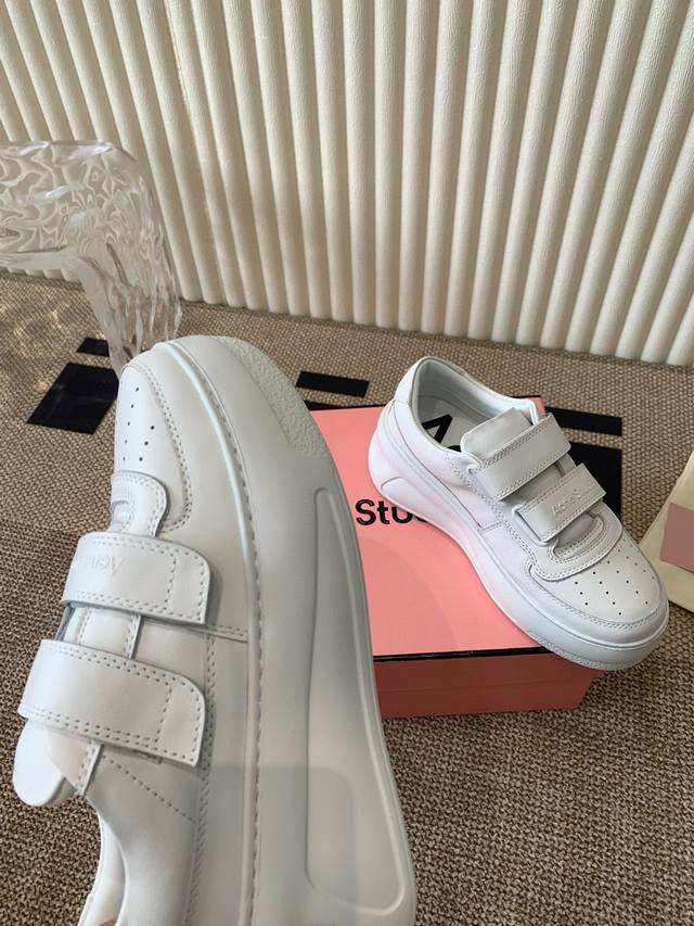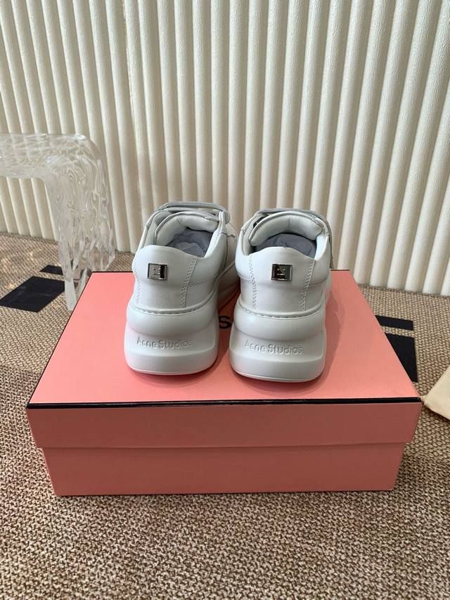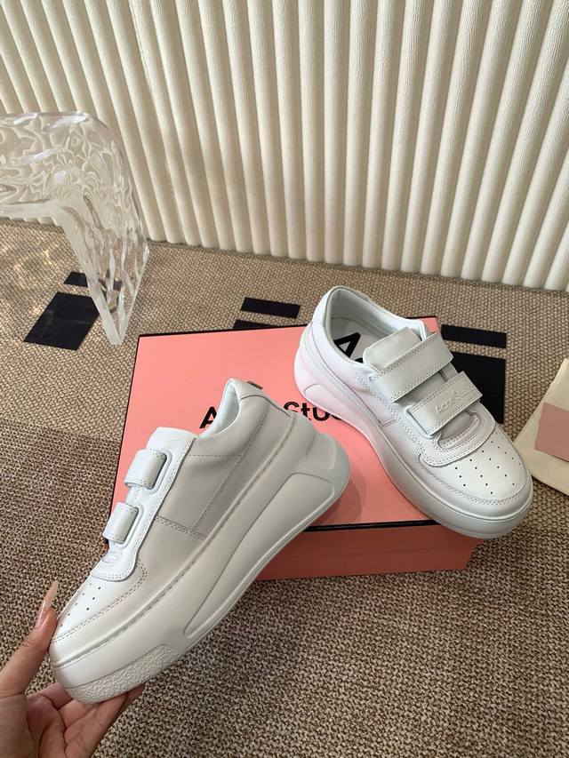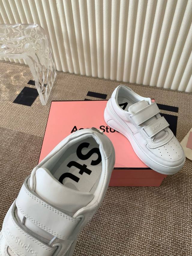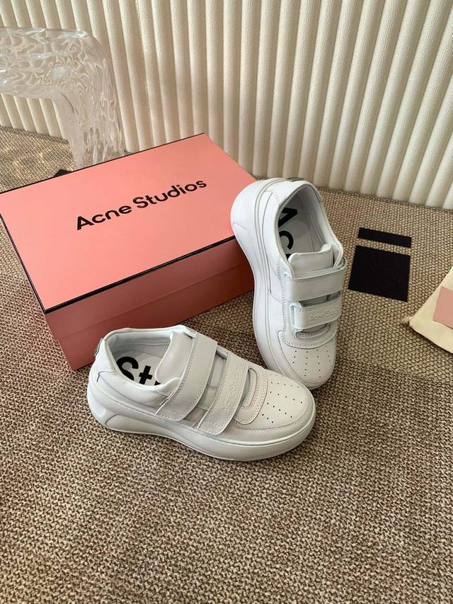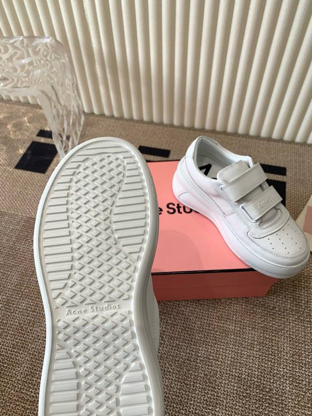 Acne Studios 24Ss 最新厚底休闲魔术贴笑脸小白鞋