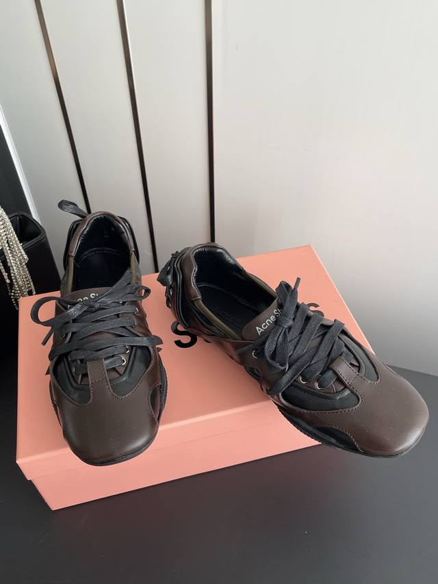 Acne Studios 26Ss新款芭蕾舞运动鞋 Acne Studios将运动鞋与当下热门的芭蕾舞鞋元素结合首次推出芭蕾舞运动鞋 DDD 整双鞋也参考了芭蕾舞女演员真实穿的足尖鞋 打造前半段的绑带设计 脚后跟的地方也有交叉绑带 船型鞋身 窄长楦头等等 都和足尖鞋有几分相似 Ddd 鞋面采用带有纹路的饰面皮革制成 鞋后方还有精致的装饰性绑带 搭配无缝橡胶鞋底 是一双兼具浪漫与街头感的平底鞋 Ddd 码数:35-40 40定做 DDD