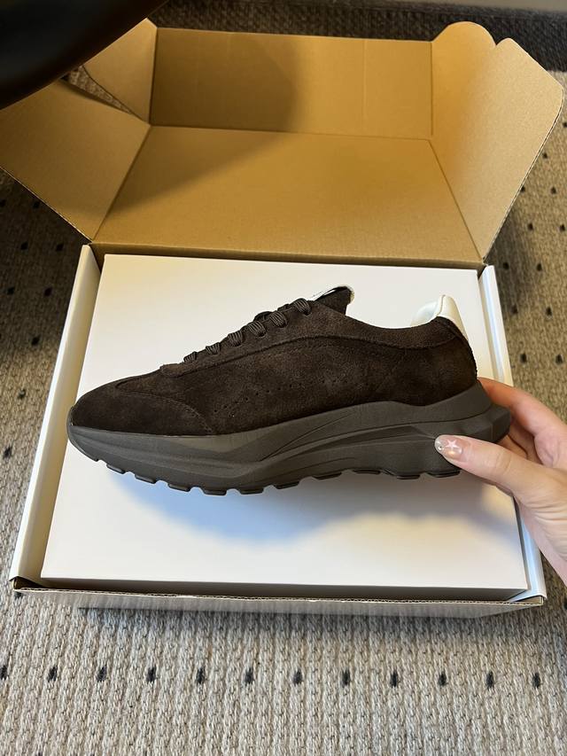 Al*25Ss 新品复古廓形休闲运动鞋 DDD 鞋面采用麂皮面料,触感柔软且自带高级哑光质感,提升整体穿搭的精致度;鞋口内侧搭配简洁的白色衬里,与鞋面形成材质和色彩的对比。 DDD 有灰色、米色、白色、黑色、深棕等多元中性色,涵盖冷暖色调,适配通勤、休闲等多种场景,轻松融入不同风格的穿搭。 DDD 延续复古运动鞋的轮廓,搭配同色系系带设计,简约利落;厚底造型既增加了视觉上的轻盈感,又能在潜移默化中提升身高,鞋舌处的品牌标识则强化了辨识度。 DDD 材质:牛反绒 DDD 内里:羊皮 DDD 大底:发泡大底