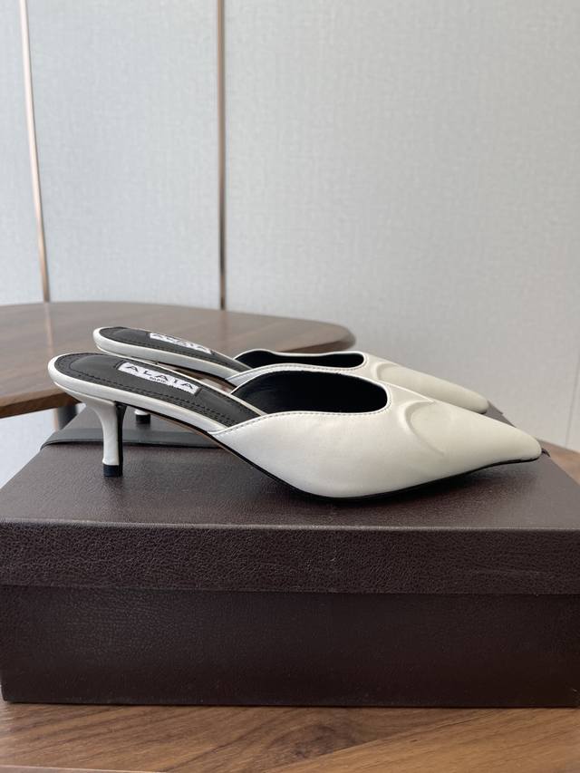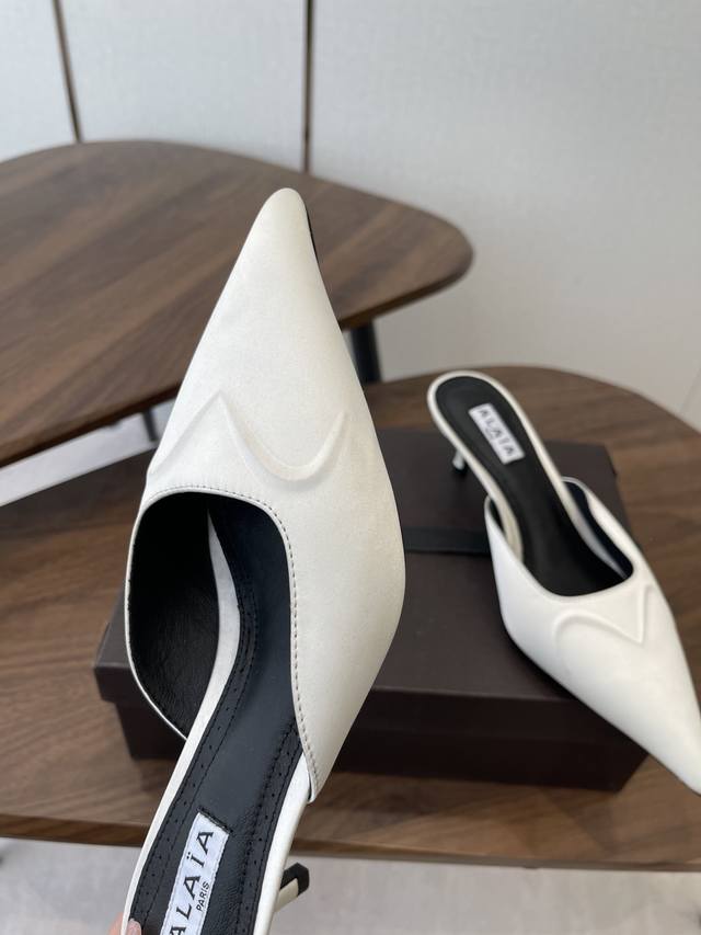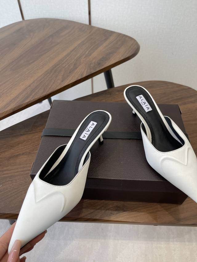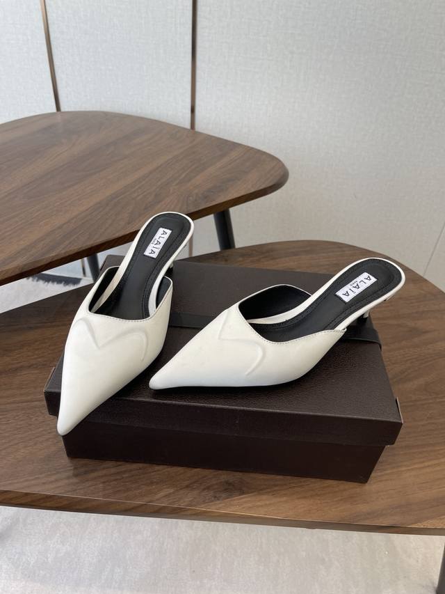 FFF Alaa26Ss尖头穆勒小高跟鞋半拖 DDD 采用极致锐利的尖头廓形搭配穆勒无后跟设计,鞋身有几何拼接的立体剪裁线条,部分款型融入品牌标志性的蛇鳞纹理拼接,5Cm的弧形细高跟兼具建筑感与优雅度。 DDD 鞋面以小牛皮、漆皮小牛皮为主,内里选用柔软的小羊皮,配色丰富且饱和度高,兼具视觉冲击力与百搭性,极简的穆勒款式可适配晚宴、轻奢社交等精致穿搭场景。 DDD 鞋面:羊皮 DDD 内里:羊皮 DDD 大底:真皮大底 DDD 增高:5Cm DDD Size:35-40码 40码定制不退换 DDD