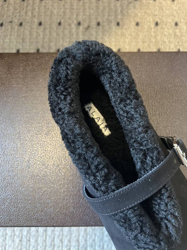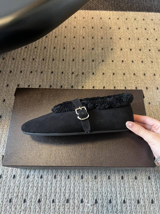 Alai* 25Ss秋冬新款加绒勃肯风玛丽珍鞋 DDD 采用反绒面料搭配羊羔毛内里,保暖性强;一字扣带设计,金属扣具提升质感,兼具复古与精致感。圆头版型包容脚型,平底设计保障舒适度,鞋口的毛绒边缘柔和又显可爱,风格介于休闲与复古之间。 DDD 有米杏、深棕、巧克力棕、黑色等多色可选,适配不同风格的穿搭,且色调偏大地色系,秋冬氛围感拉满。 DDD 鞋面:牛京 Ddd 内里:羊毛 Ddd 大底:Tpu大底 Ddd 码数:35-41 Ddd DDD