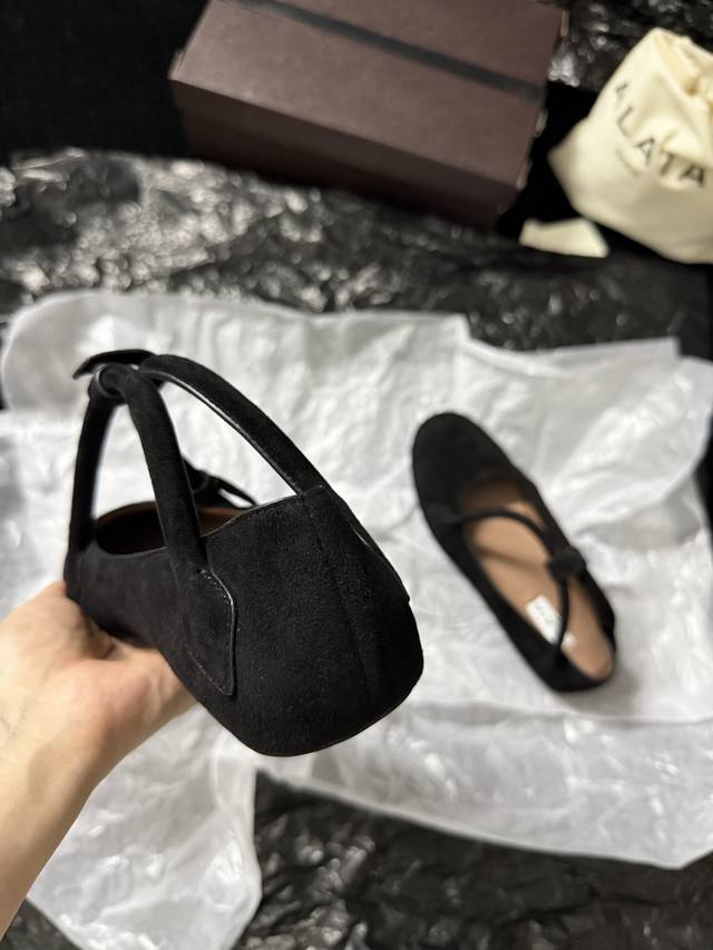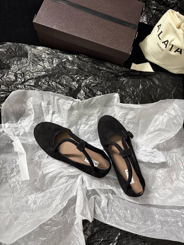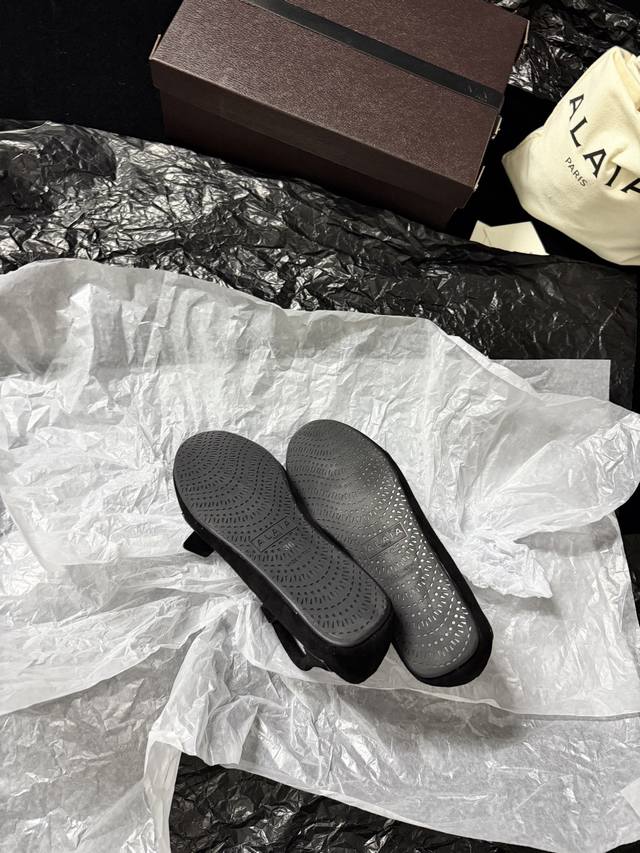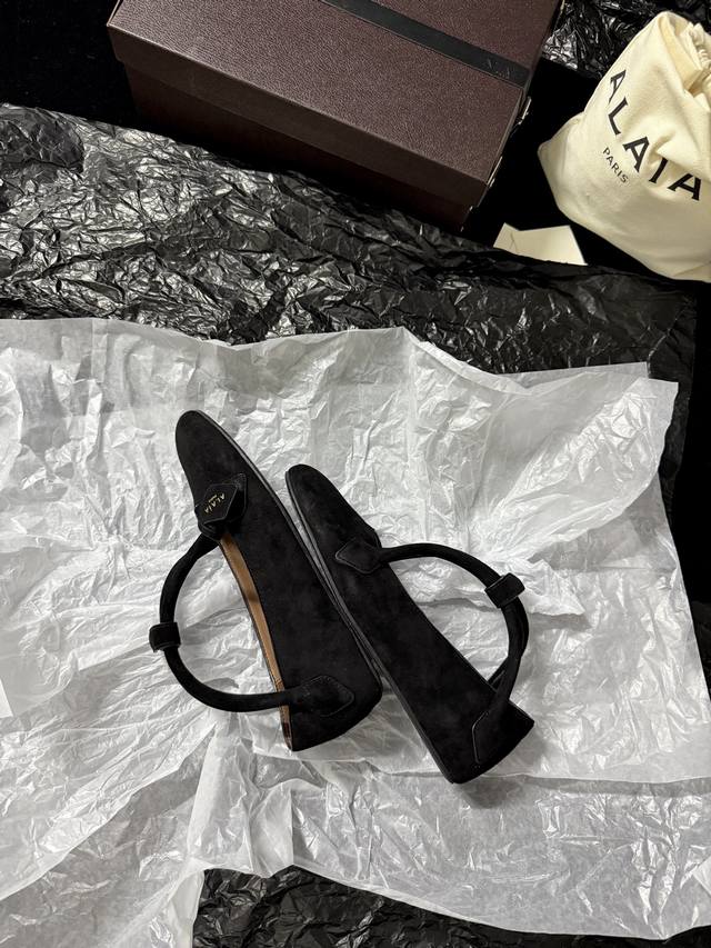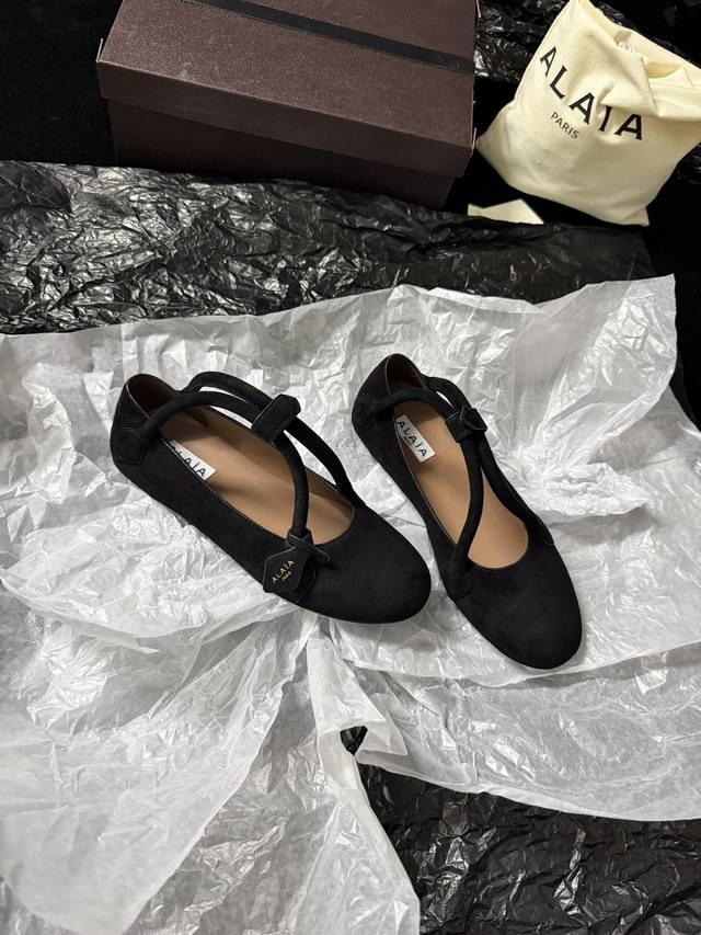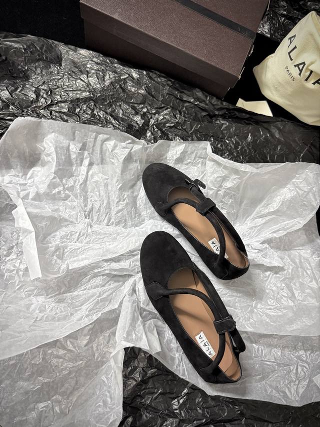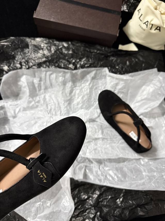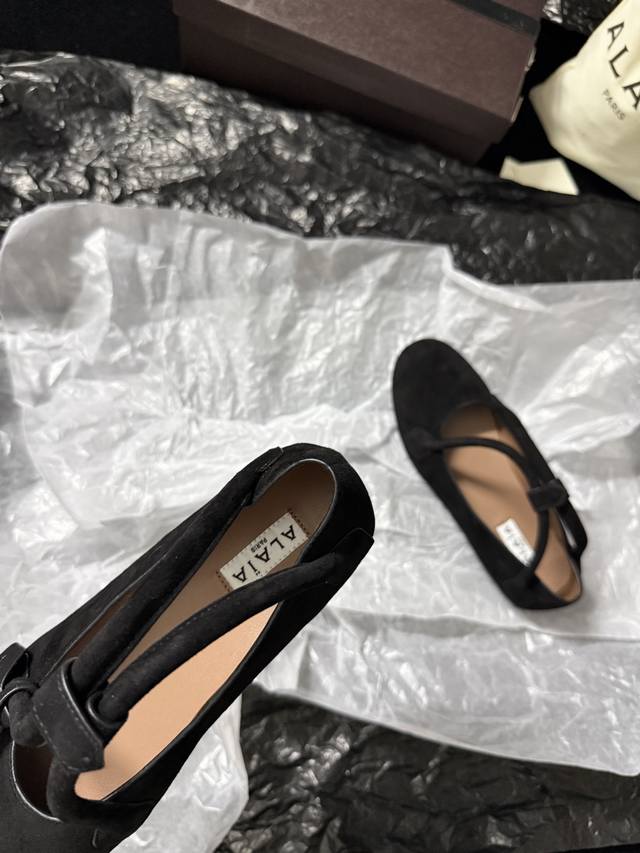 Alaia 新品 手提芭蕾舞 把法式时髦捏得死死的 交叉绑带设计自带优雅氛围 麂皮质感高级又柔和 小细节处的品牌标识更是点睛之笔 不管是搭配裙装还是裤装 都能轻松提升造型质感 妥妥的时尚利器~ 鞋面进口麂皮.牛皮 内里进口羊皮 Zp复刻大底 35-39 40.41.42定