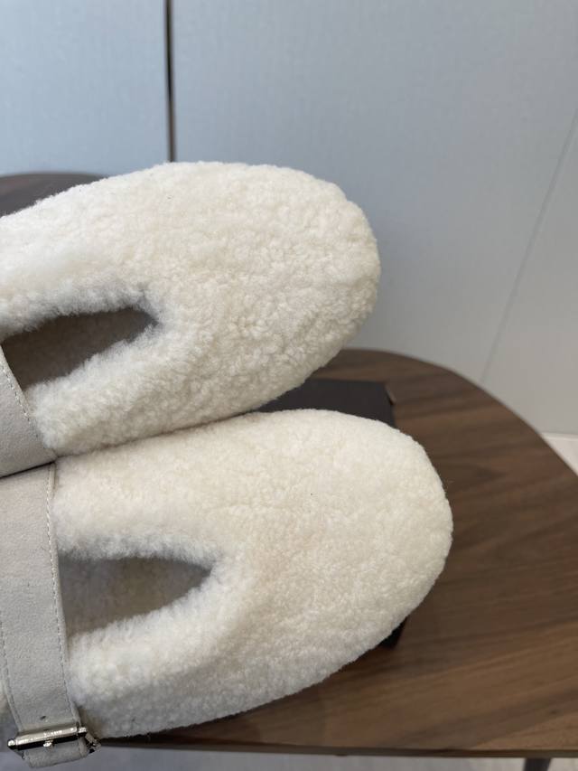 莞产 The Row 秋季新款绑带拉链老钱风雪地靴 采用皮毛一体鞋面,触感柔软舒适,内里羊毛...