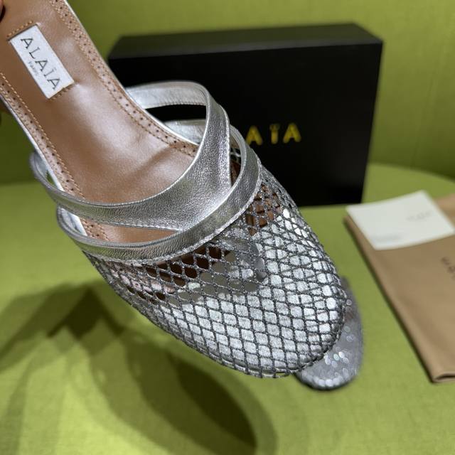 / Alaia 阿莱亚 2025Ss 春夏新款 人字拖凉鞋 渔网交织皮革,融入人字拖设计。漆皮细节映衬渔网鞋面,于步履间释放摩登张力。 面料:漆皮 内里垫脚:羊皮