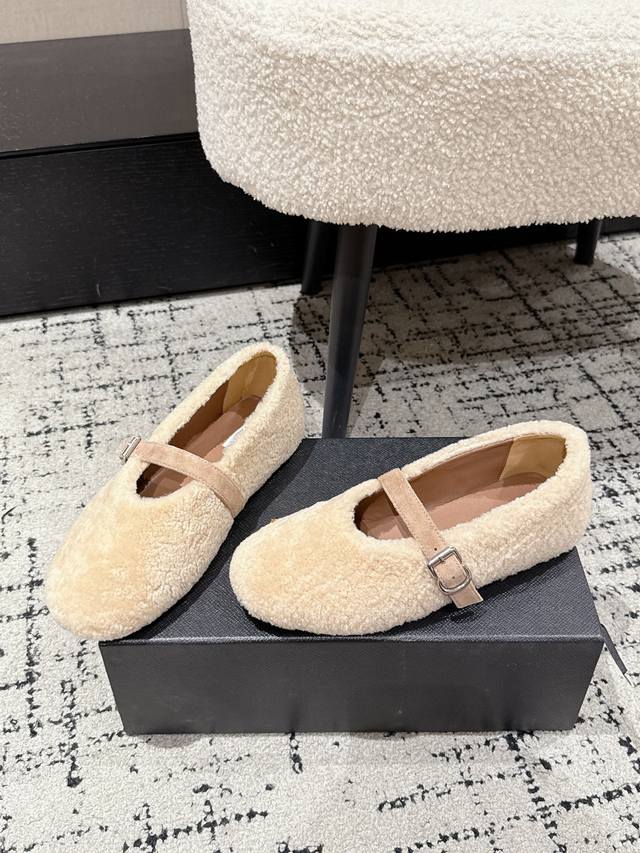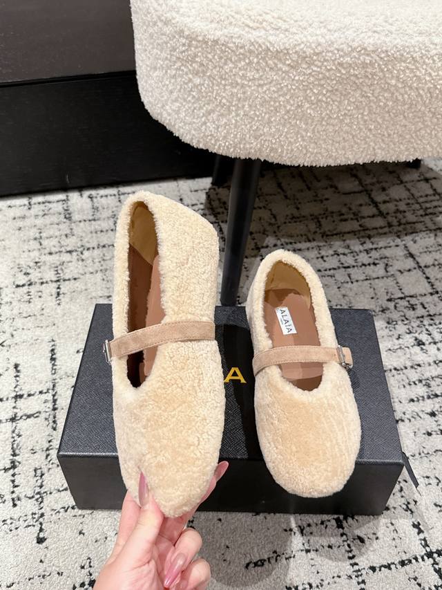 Alaia 25 秋冬新款羊猄面 玛丽珍鞋 芭蕾鞋 DDD 采用反绒面料搭配羊皮内里,保暖性强;一字扣带设计,金属扣具提升质感,兼具复古与精致感。圆头版型包容脚型,平底设计保障舒适度,鞋口的毛绒边缘柔和又显可爱,风格介于休闲与复古之间。 DDD 鞋面:羊猄面料 DDD 内里:羊皮 DDD 大底:原版橡胶防滑大底 DDD Size :#35-42 40.41 42定制不退换 DDD