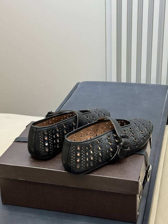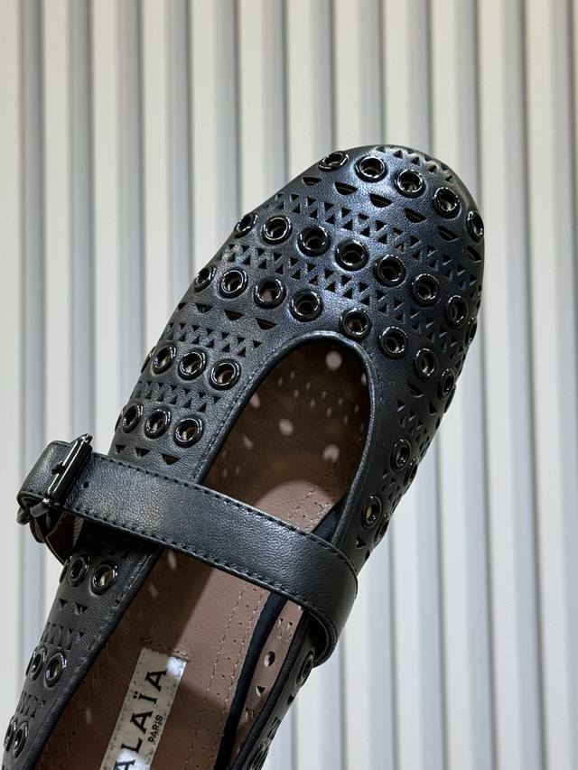 Alaiai 26C New Arrival~ Ddd 大家对Balletcore 芭蕾风的印象是不是还停留在柔和色调和绑带的元素,Alaia来向你展示芭蕾美学的进阶版!将芭蕾舞鞋和金属元素进行结合就得到了Ws25新款 Vienne 金属洞眼芭蕾舞鞋 Ddd 谁说Balletcore 只有甜甜的风格,这种又甜又酷才是王炸好吗! Ddd 里外小羊皮材质,软胶底,脚感满分 Ddd Size 35-41 DDD
