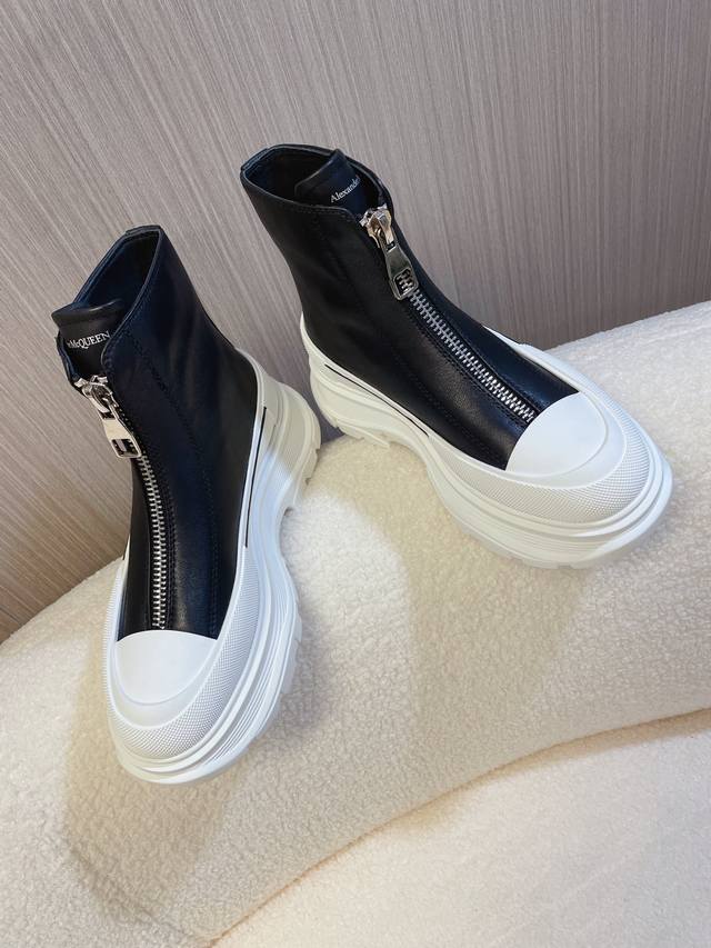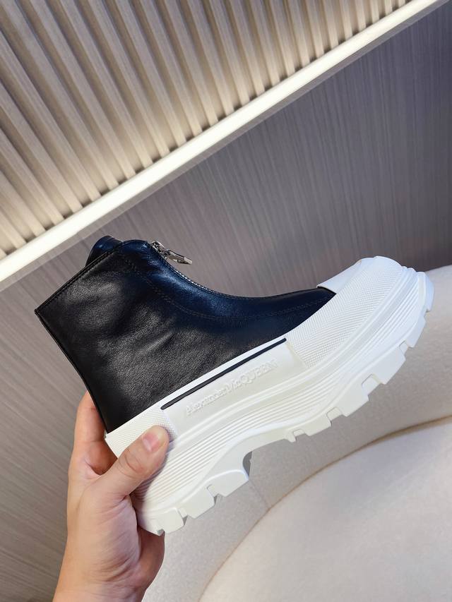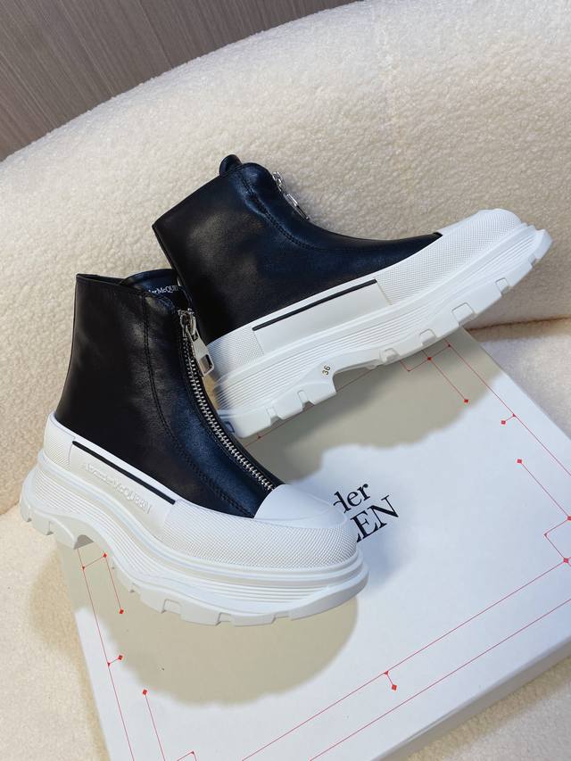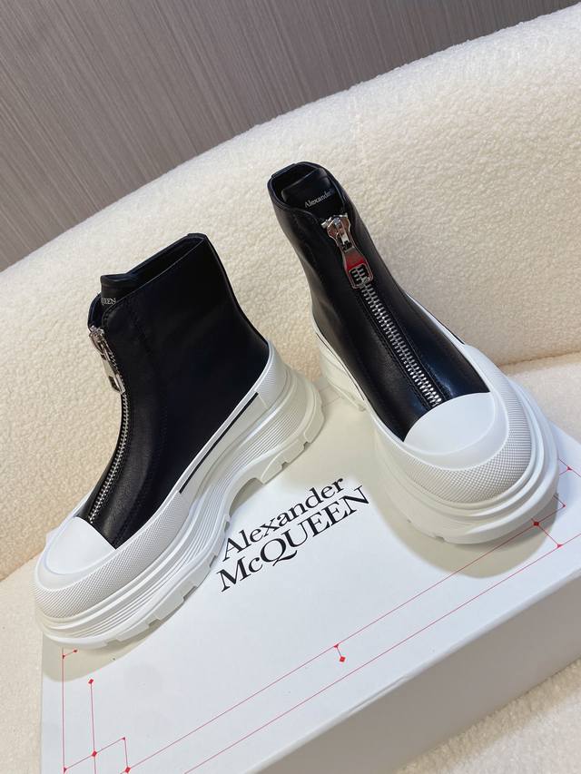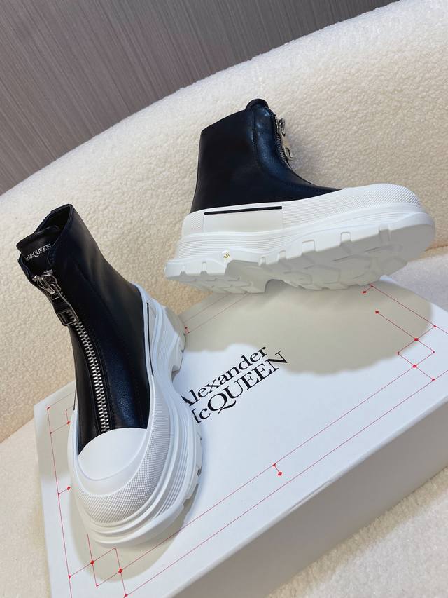 Alexander Mcqueen 马丁靴;短靴;长靴 小红书种草款、明星打Call款 热度不用再说了,万人迷百搭爆款 细节定制高端货,原版1比1复刻 独家开模原版楦 原版底 原版皮 全头层粒面牛皮面;全真皮内里;原版贝壳头Tpu大底;中置铁拉链设计;鞋舌鞋背字母Logo点缀 35 40正码 配套包装 裸靴