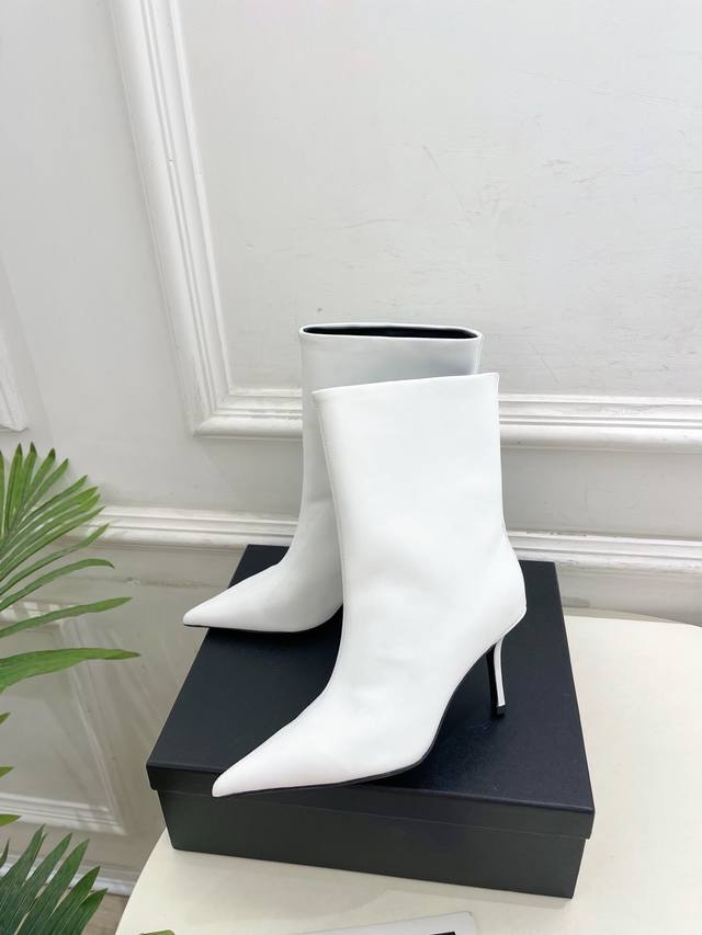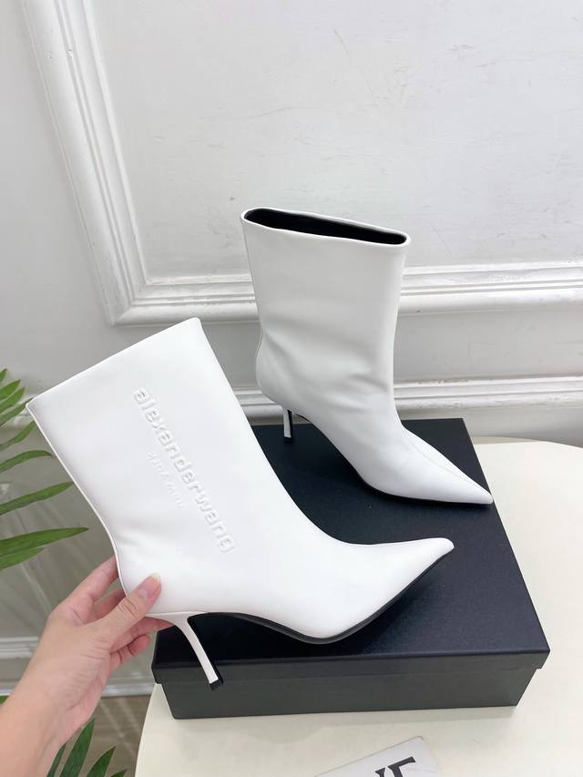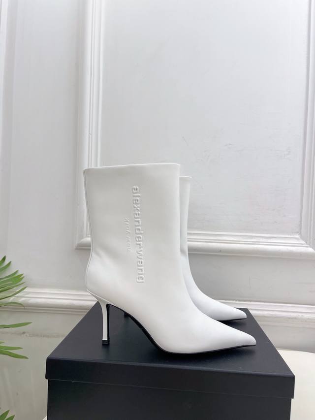 Alexander Wang 亚力山大王 2025秋冬新品 大王尖头字母高跟短靴 长靴 在欧美街拍中出境率超高 Ins也是火了一把 这款具有独特风格的情侣款“调