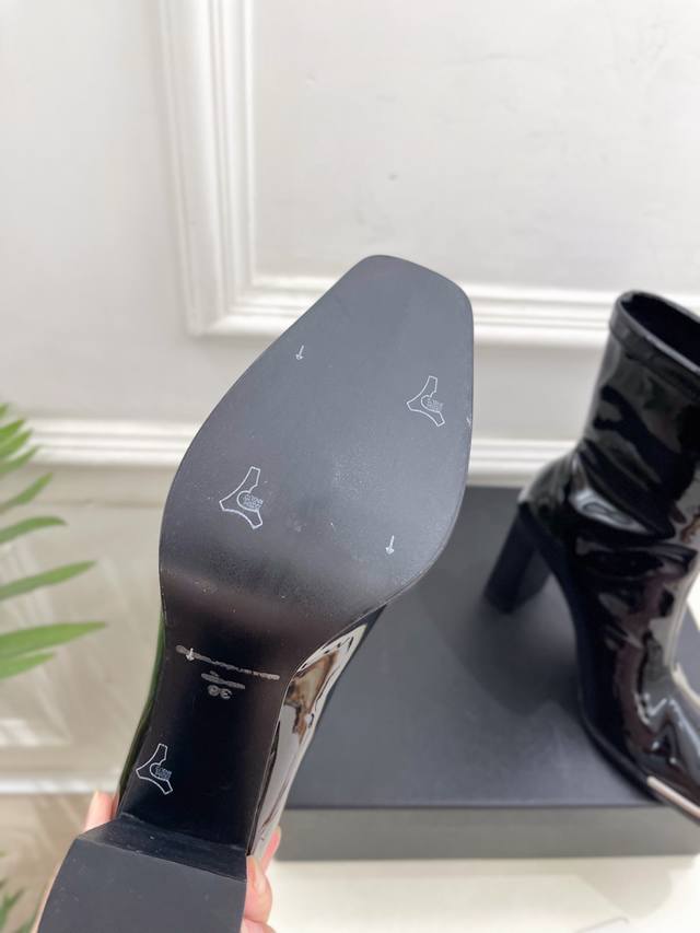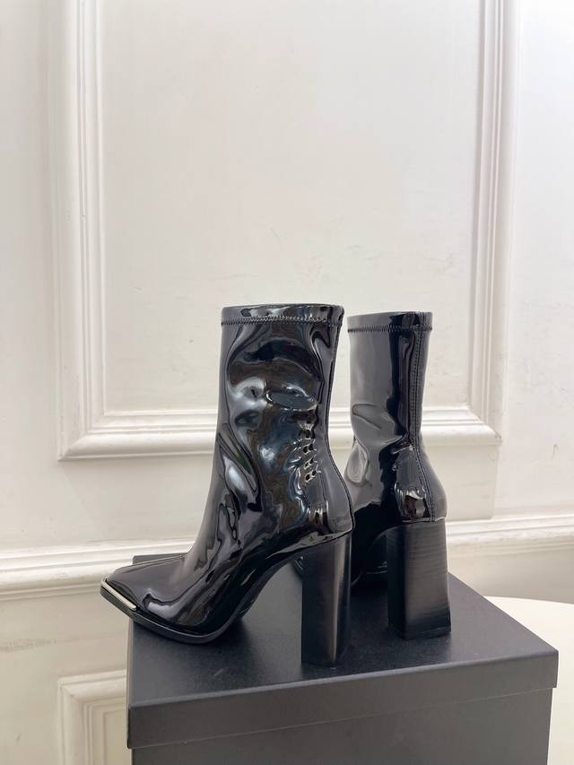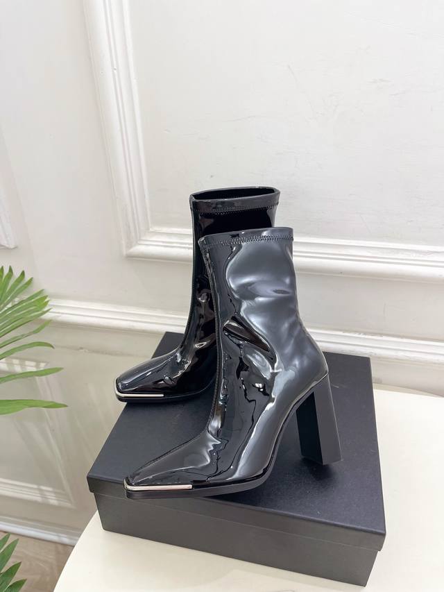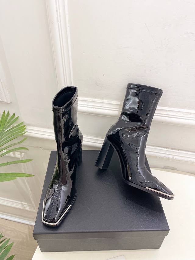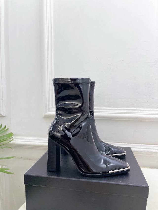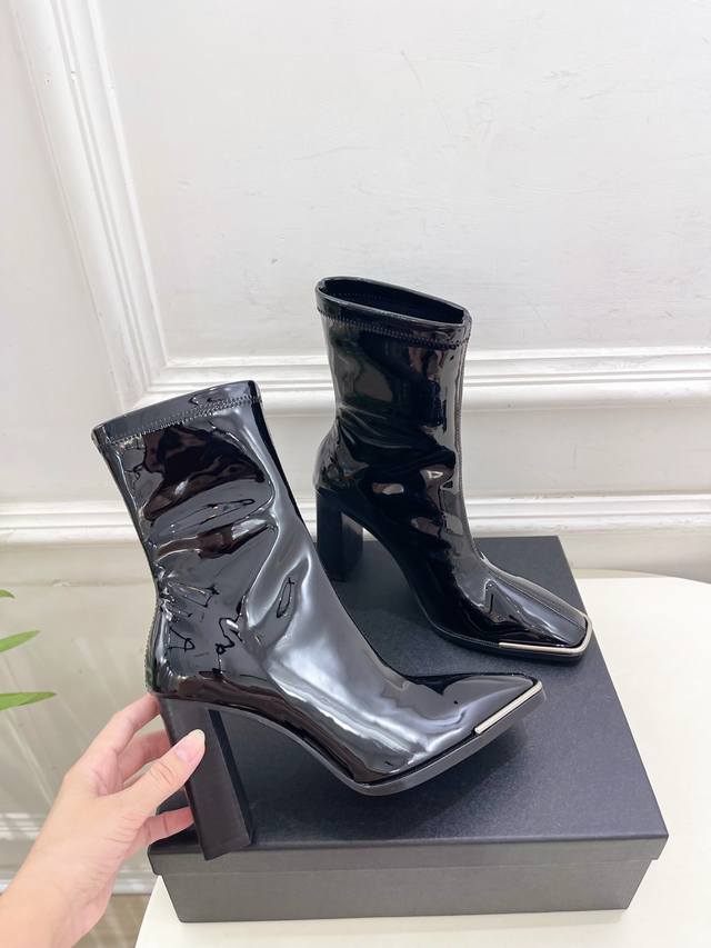Alexander Wang 亚力山大王 2025秋冬新品 大王方头金属扣高跟弹力短靴 长靴 在欧美街拍中出境率超高 Ins也是火了一把 这款具有独特风格的情侣款“调鞋楦都调了一个月 整体线条流畅性保持跟原版一致 Bs真的太帅了 面料:原版高定制小牛皮 牛漆皮 内里:进口羊皮 大底:原版进口真皮大底 跟高:9.5Cm 码数:35-39 34.40.定制不退换 出厂价Pp:短靴 长靴