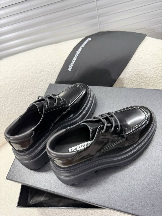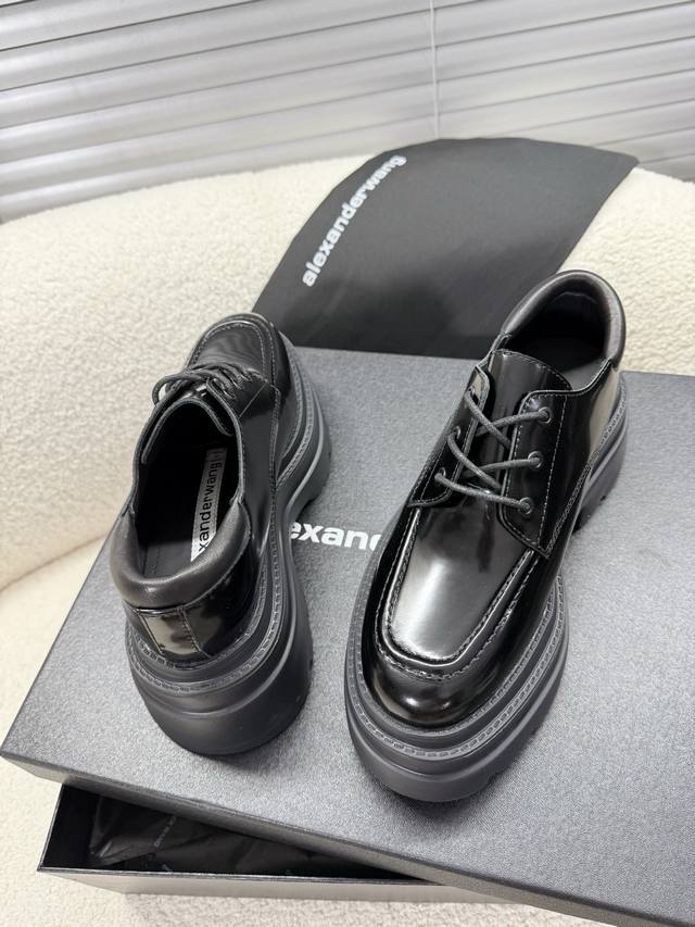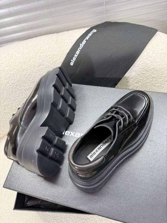 Alexander Wang 厚底鞋,乐福鞋,马丁靴,短靴~~ DDD 大王这双厚底乐福鞋绝对是腿精必备神器 DDD 显高显瘦,黑色经典百搭王~~ DDD 高光皮面搭配激光Logo,绑带设计加上7Cm厚底轻松拥有大长腿! DDD 鞋面原版开边珠牛皮+羊皮拼接+7Cm厚底 DDD 35 40正码 乐福鞋 DDD