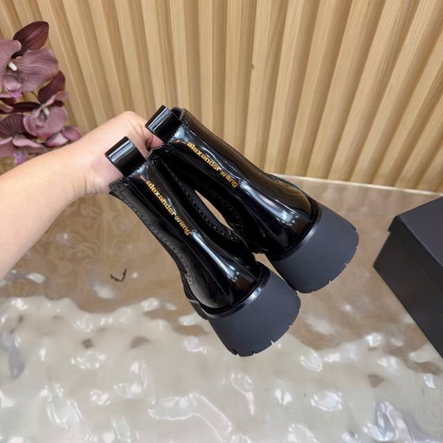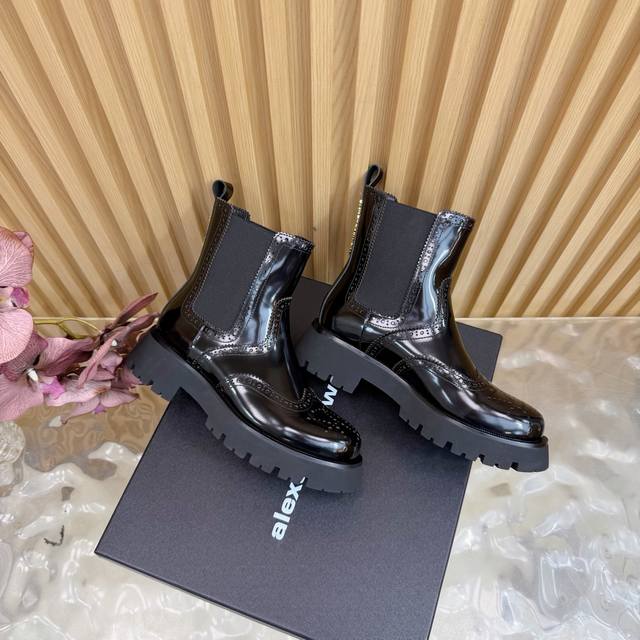 Alexander Wang 大王25Ss新款 雕花马丁短靴 厚底 短靴马丁靴大王这双厚底短靴 绝对是腿精必备神器 显高显瘦,黑色经典百搭王~~ 皮面搭配激光L