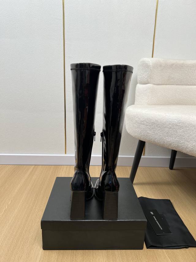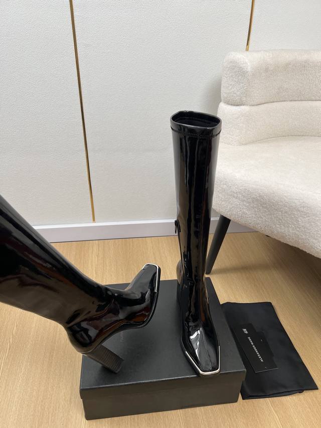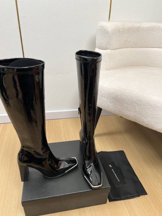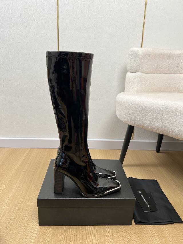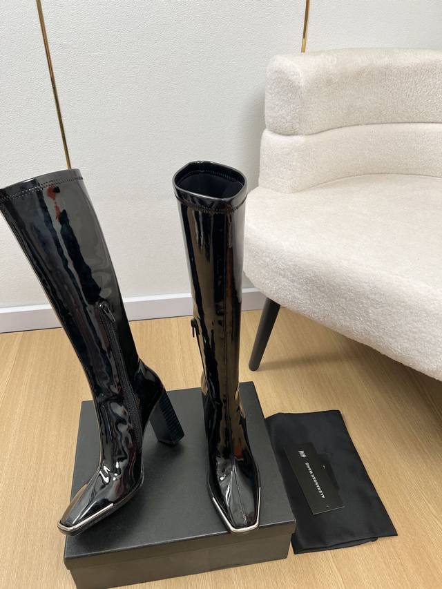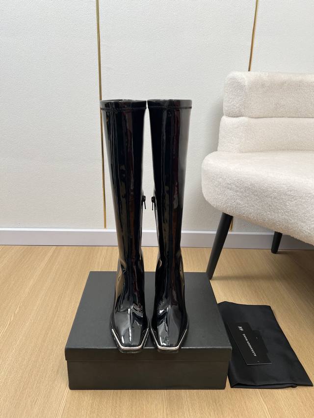 Alexanderwang|亚历山大王 2025 DDD 大王家2025秋冬新品专柜最新爆款方头金属扣高跟弹力靴系列 DDD 个性御姐风 超有质感 爱了爱了 DDD 该款设计简约上脚时尚舒服 夏季不可缺少的一款大王呈现焕然一新的标志性轮廓。这款鞋履由柔软皮制成镂空鞋跟搭配五金件徽标又酷又辣 长腿神器的腿精必备各路大博主都纷纷上脚!独特得来又时髦,这个夏季必须拥有一双大王鞋子 DDD 鞋面:原版定制牛皮 牛漆皮 DDD 内里:羊皮 DDD 大底:进口真皮大底 DDD 跟高: 9.5Cm DDD 码数:34-