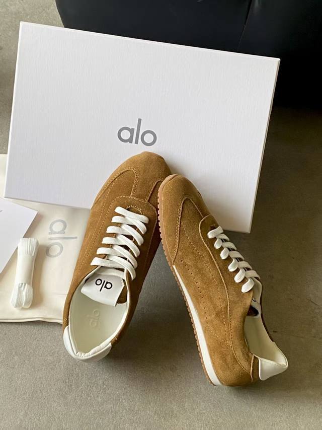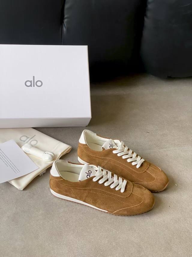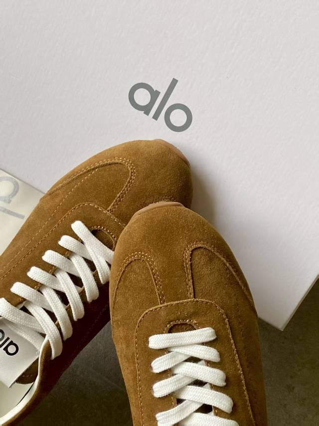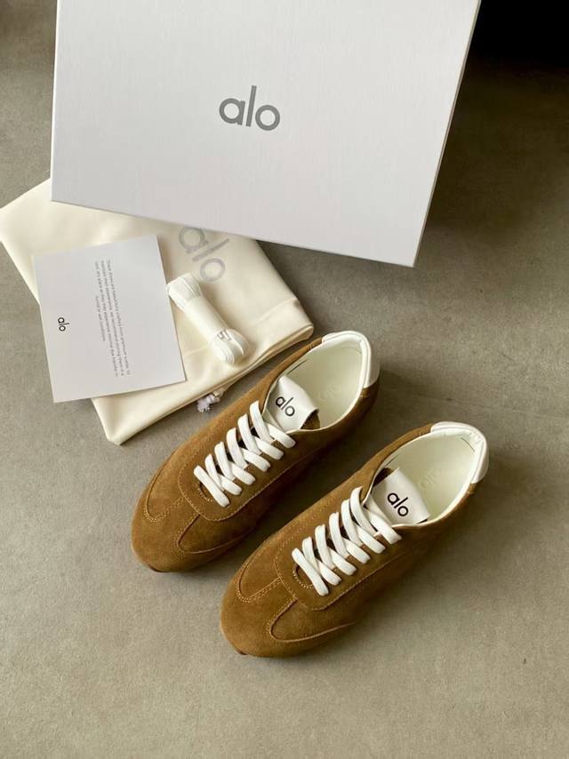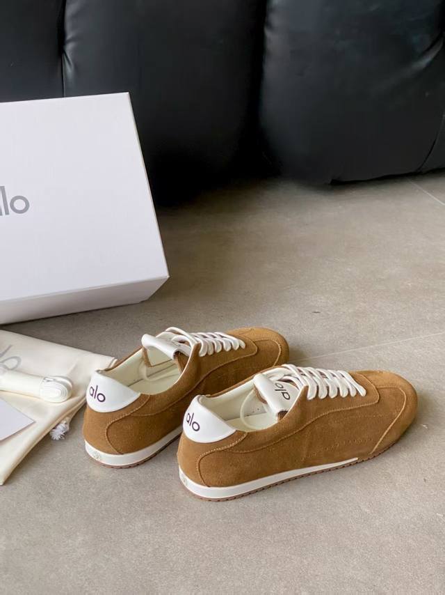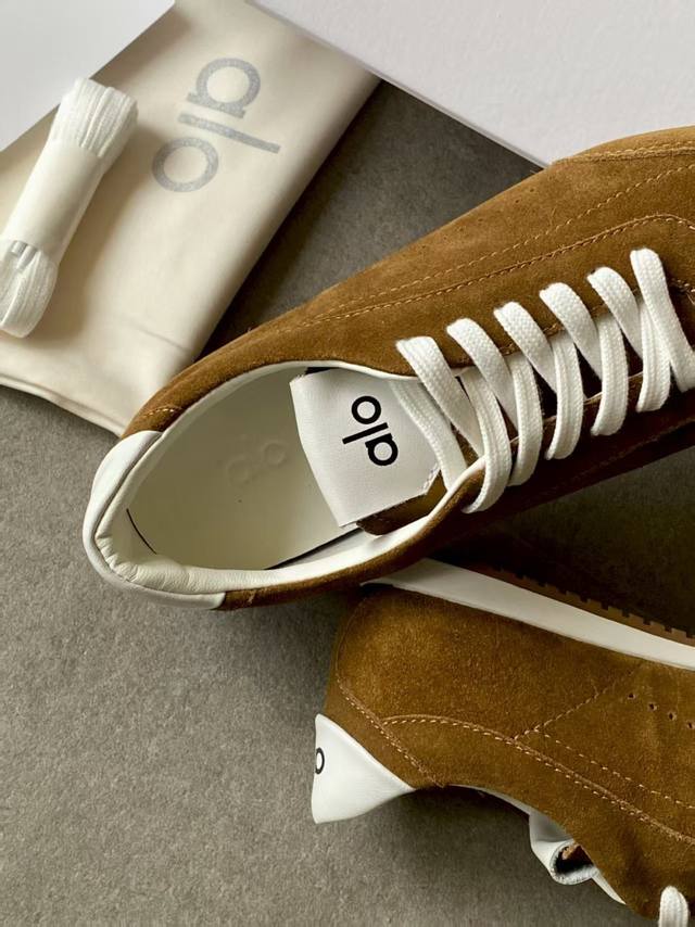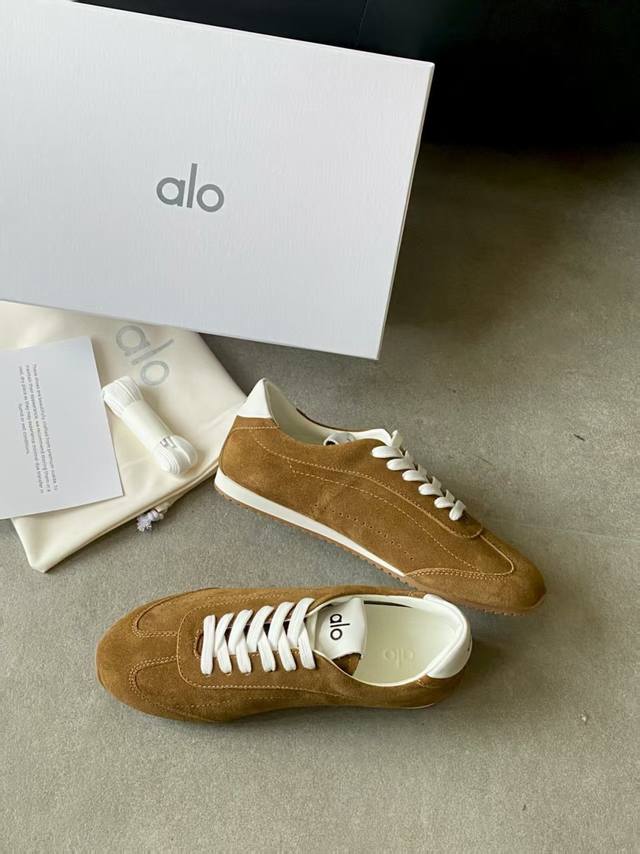 Alo新款德训鞋 Alo真的太会了,氛围感在线,松弛又温柔的运动风,日常出门、溜娃、健身都是不二的选择,舒适又很有气质,细腻质感真皮牛绒,内里原版1:1透气超纤