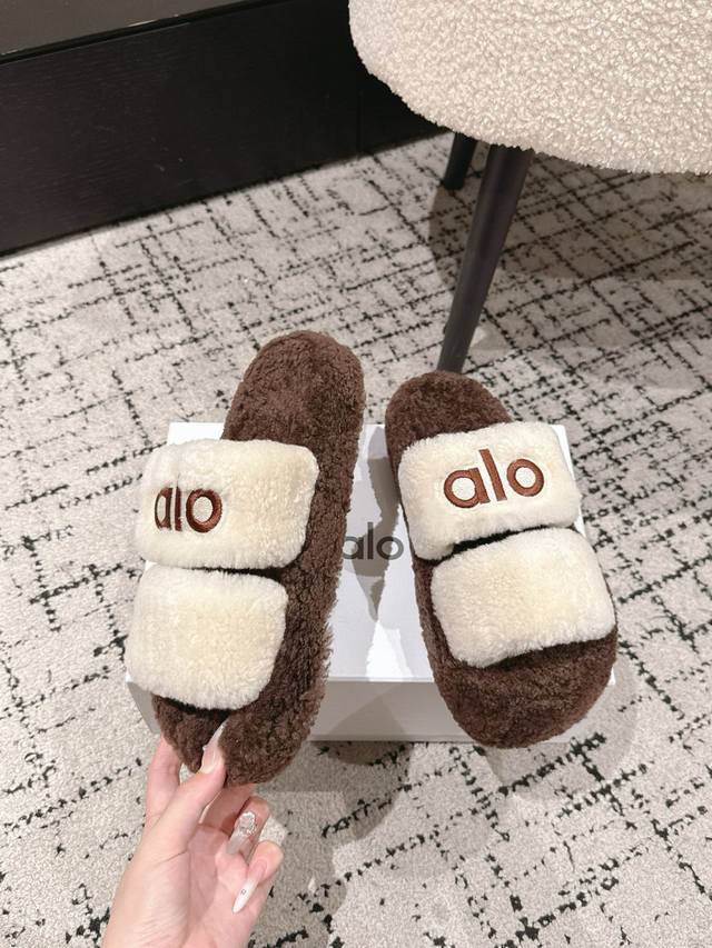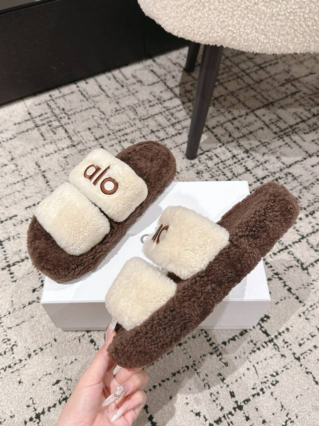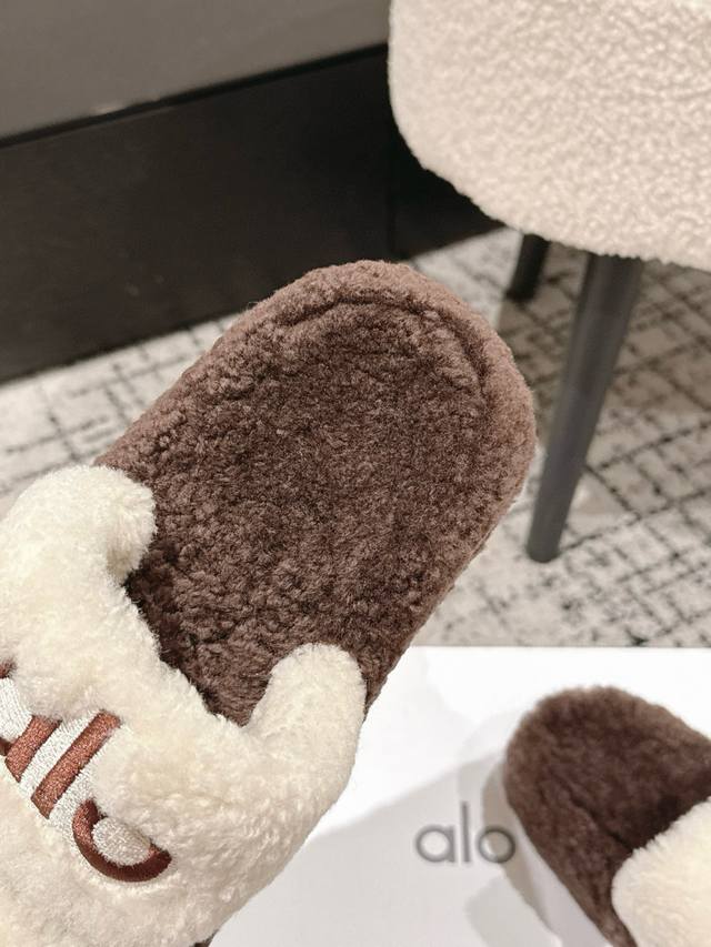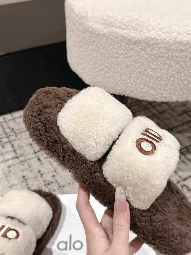/ Alo 小众潮牌25 秋冬平底羊毛拖鞋新品 超舒适的毛拖 简约随性 时髦有范, 慵懒又不乏高级感,最舒适的拖鞋没有之一 随意上脚都好看有型,绝绝子 鞋面 内里