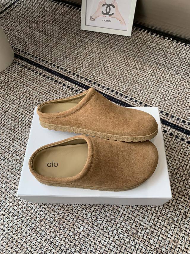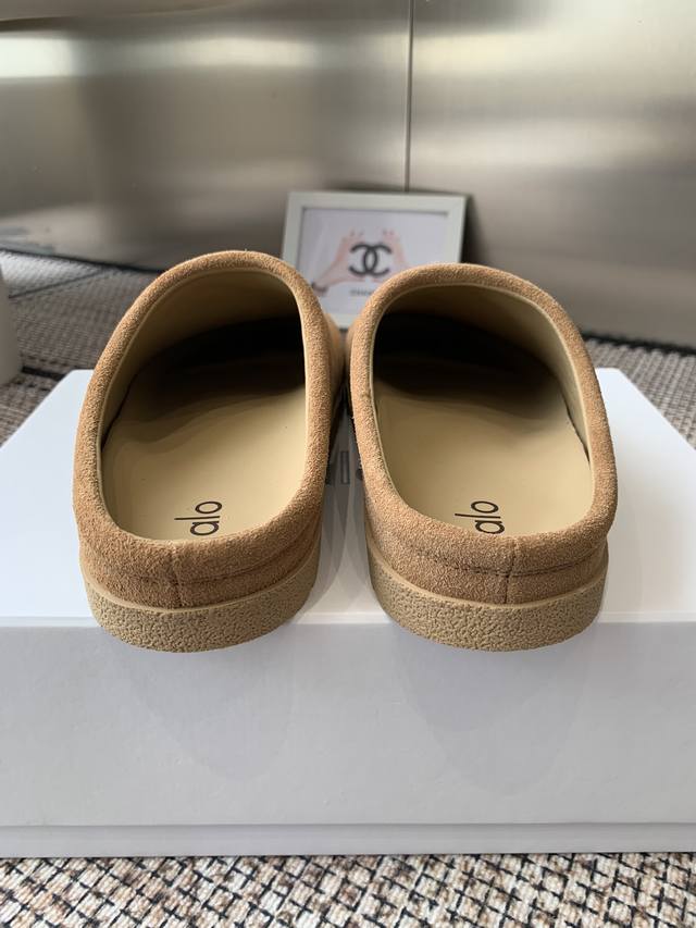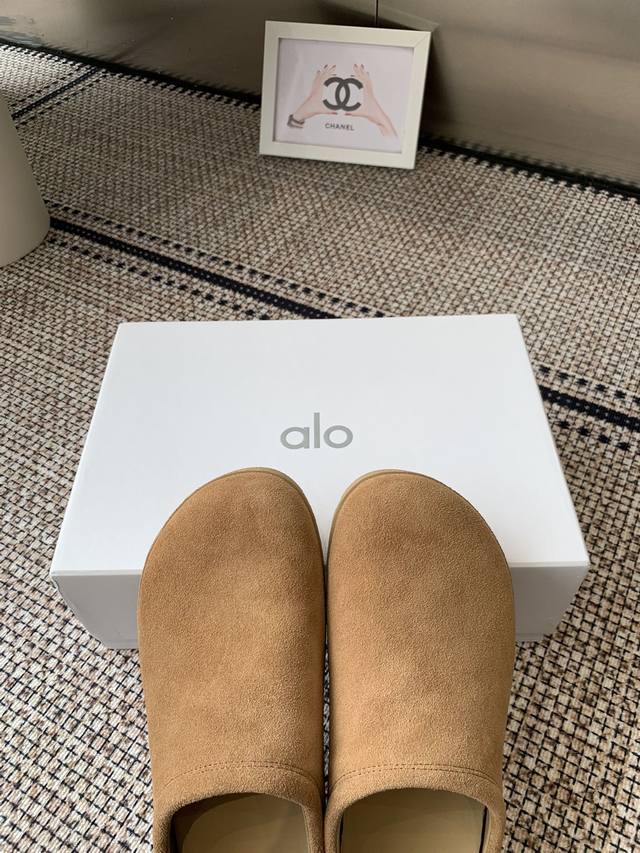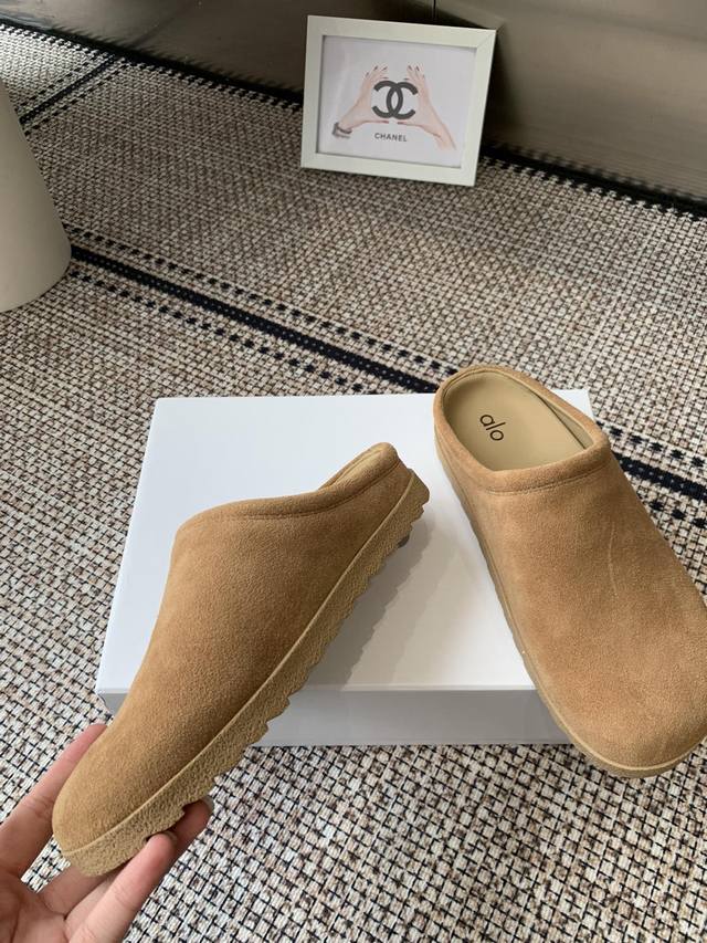 Alo 25Ss夏季新款勃肯包头拖不踩雷的简约风拖鞋来啦~ 代购找很久才买到货 真的一鞋难求,真的超级好看 姐妹们给我冲 麂皮面料 原版开模橡胶大底 码数:女35-40 40定做不退换