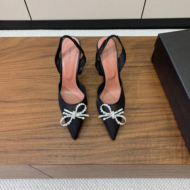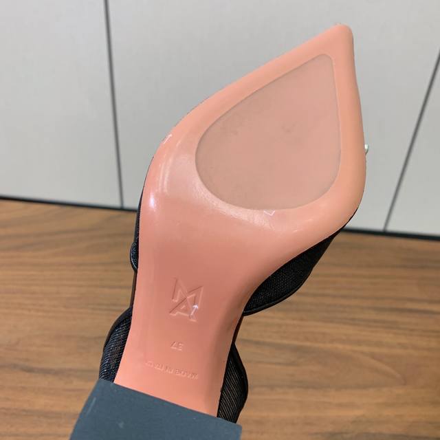 Amina Muaddi 网面钻扣后空单鞋。定制面料,细腻柔美,仿佛穿上了春天的浪漫。羊皮垫脚,注塑真皮大底。跟高9.5Cm 码数:35-42 40、41、42定制不退换 批: