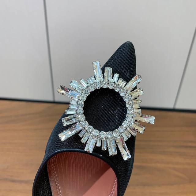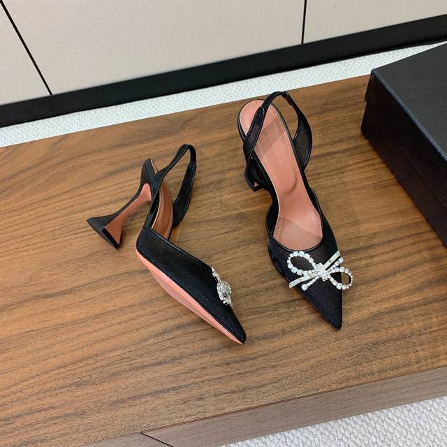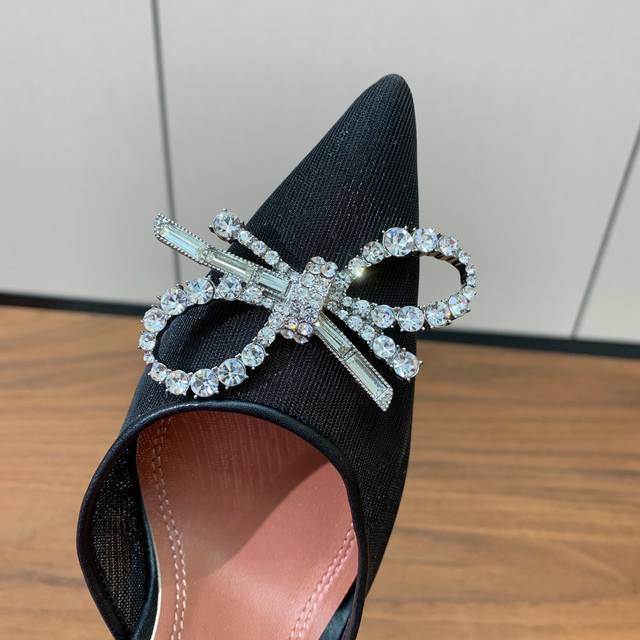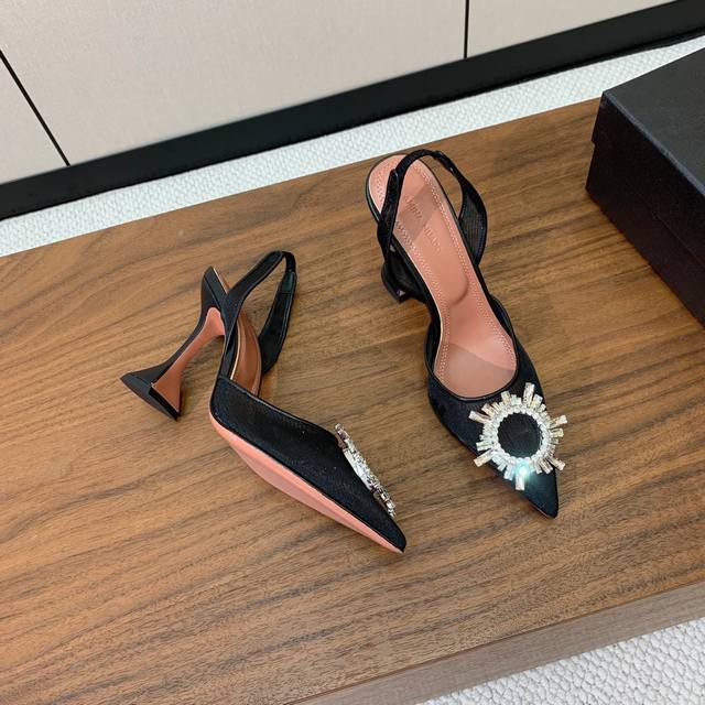 / Amina Muaddi 网面钻扣后空单鞋。定制面料,细腻柔美,仿佛穿上了春天的浪漫。羊皮垫脚,注塑真皮大底。跟高9.5Cm 码数:35-42 40、41、42
