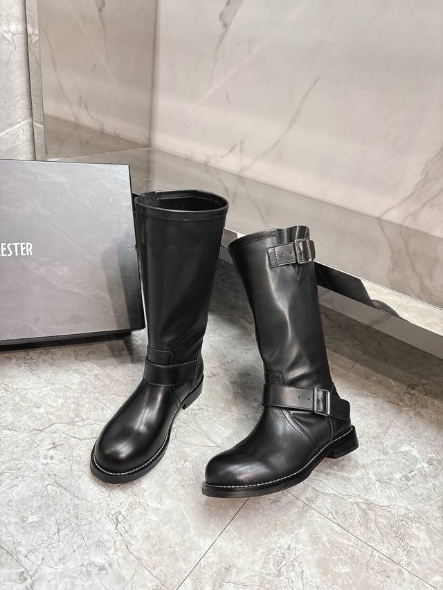 Ann Demeulemeester 2025秋冬新款复古骑士靴,入冬潮妹怎么能没有一双帅气硬朗的骑士靴呢,看似平平无奇,实则更大气百搭,又酷又飒,还巨显腿长,