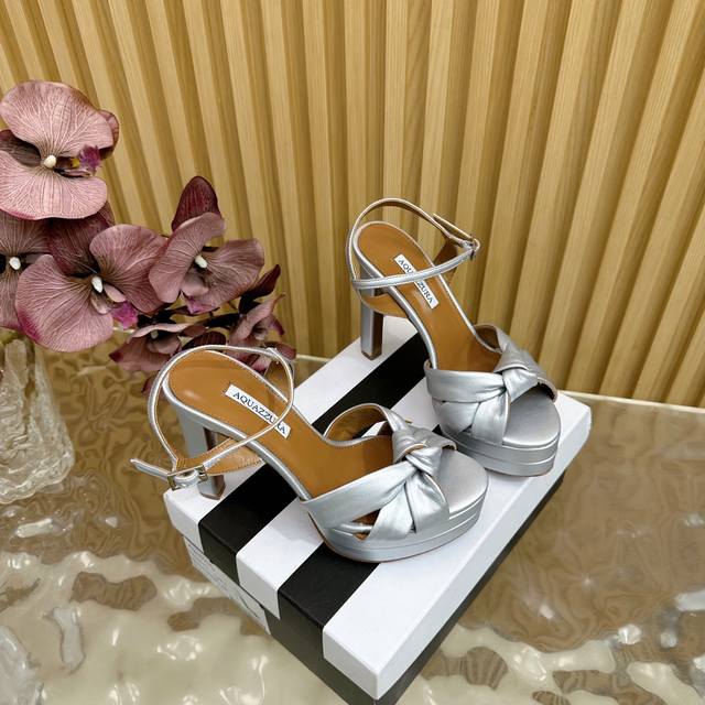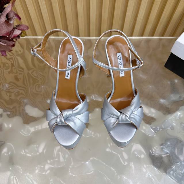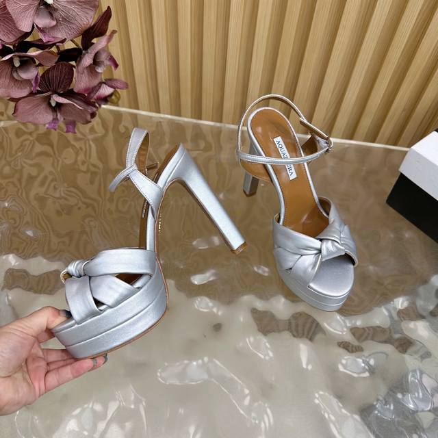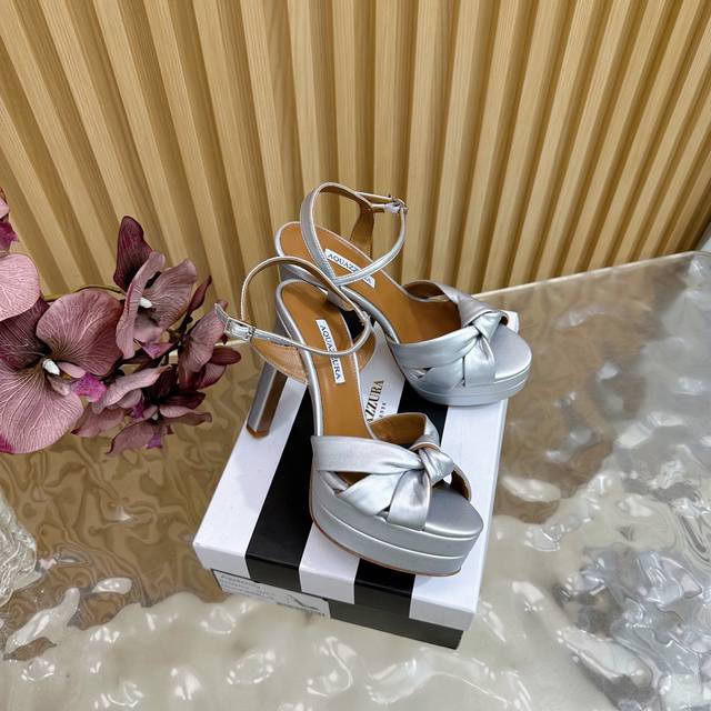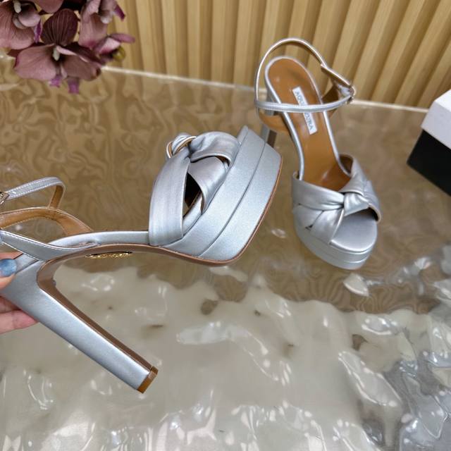 Aquazzura 菠萝牌2025新款防水台真丝钢珠凉鞋 顶级版本