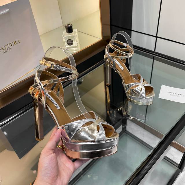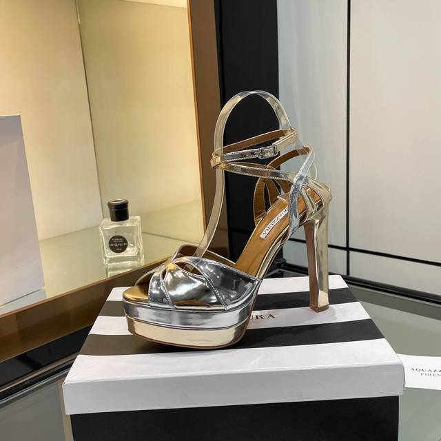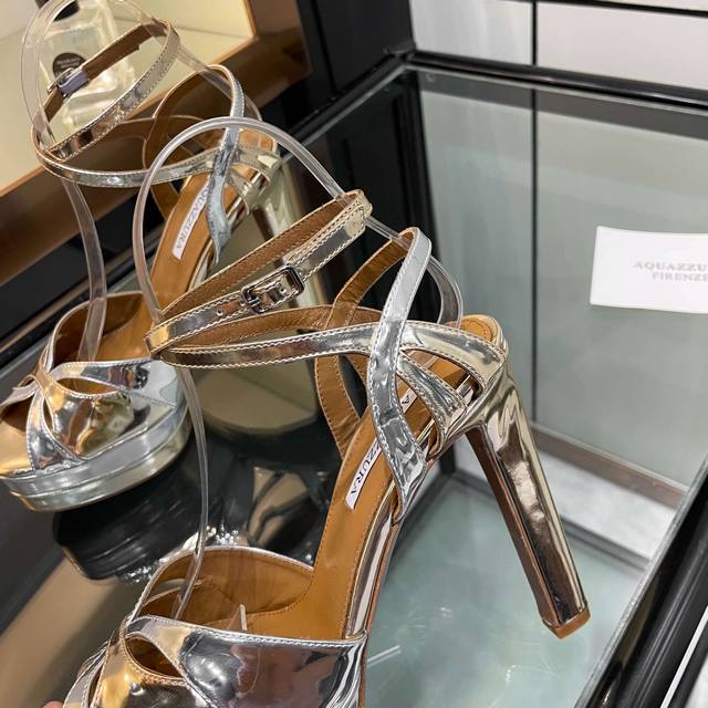 Aquazzura 2025新款凉鞋 顶级版本 独家款 代购款顶级版本 质量超级美爆。 Zp 原版开模 原版扣开模 附带原版定制漆皮,超级炫美 一眼看上去就高端