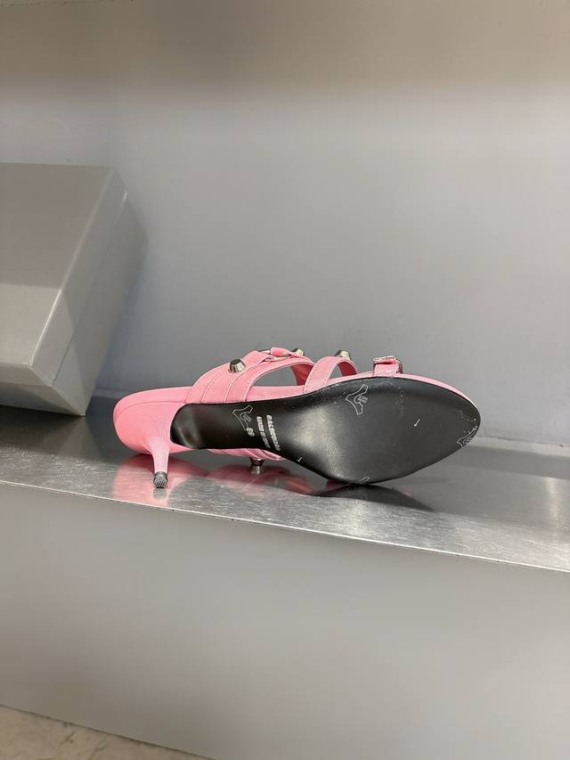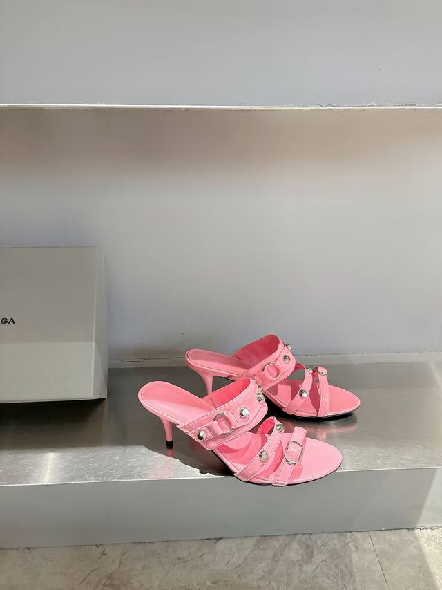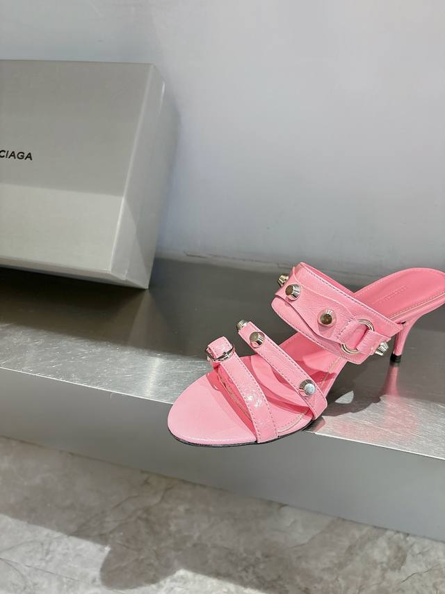 / balencia*2025春夏新款金属铆钉平底高跟单鞋 这双Cagole凉鞋鞋型是淑女拖鞋上面的铆钉又超级朋克街头简直太别致了 Ins爆款 鞋面采用原版订做牛皮