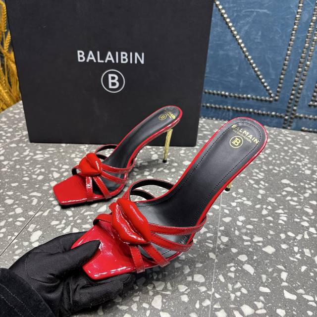 / Balmain巴尔曼 最新款走秀时装 嘴唇时髦高跟拖鞋系列 巴尔曼 愈发別致出众 原版1:1复制 ①材质:进口牛漆皮 ②内里:进口牛皮 ③跟高:9.5Cm ④大