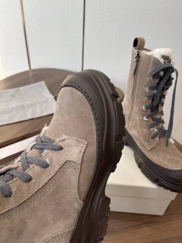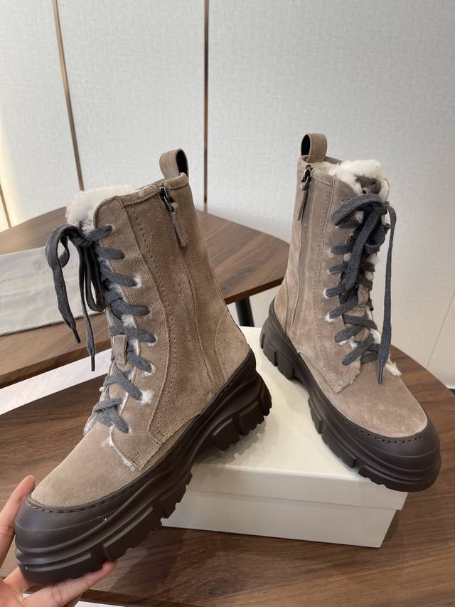 Bc 2025Ss秋冬新品 毛线筒短靴 Brunellocucinelli 源自乐福鞋的经典灵感定义了这款新胶底鞋的现代优雅风格。 DDD 珍贵的进口小牛京皮上展现着别致的斑驳,与超轻盈的天然橡胶鞋底。让您在舒适中彰显时尚性格。 DDD 给您带来更好的舒适度,又是款穿上就不愿脱下的一款经典鞋款,原版一比一复刻。两种穿搭!非常百搭 DDD 面料:牛京+羊毛毛线筒 内里:毛里 DDD Size:#35-42 40 41 42订做不退换 DDD