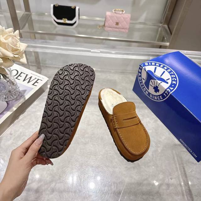 Birkenstock 勃肯 羊毛拖 DDD 日本限定版,此限量版目前只有日本能买到,新加坡,台湾都没有!进口真橡胶软木,不是低端木康底,是同红酒瓶塞一模一样的橡胶软木懂的自然懂! DDD 高级牛猄反绒皮鞋面。羊毛内里羊毛垫脚。真空电镀复古五金扣饰。木康发泡橡胶底,防滑耐磨!凸显性感美脚,修腿显瘦,百搭之王 共5个颜色 DDD 女码:35-40码 DDD
