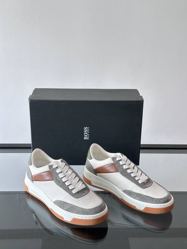 / Boss休闲板鞋,真皮反绒皮拼接,质感细腻又耐用!橡胶鞋底防滑耐磨,日常穿搭超安心。简约设计+经典小白鞋配色,百搭牛仔裤、运动裤都Ok,通勤休闲都能Hold住。