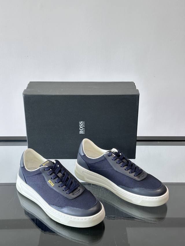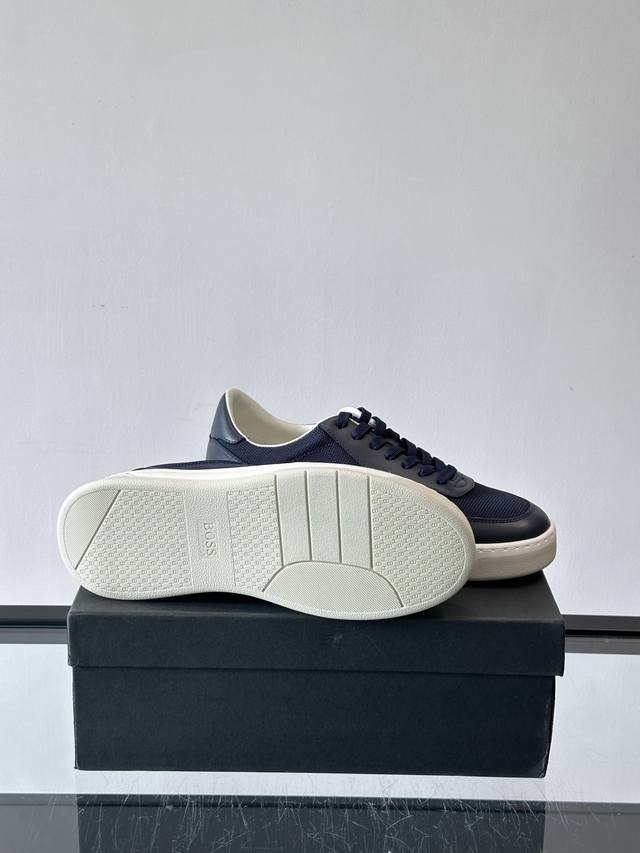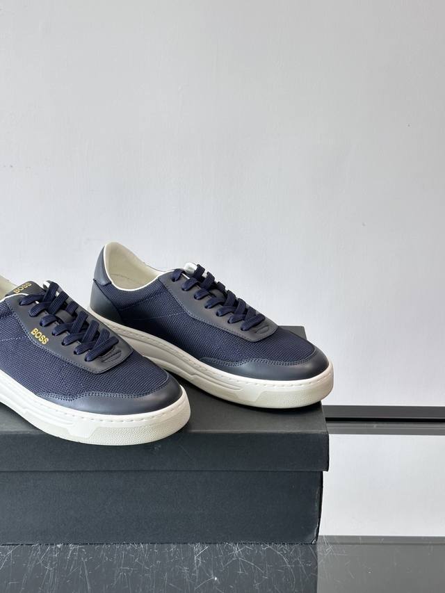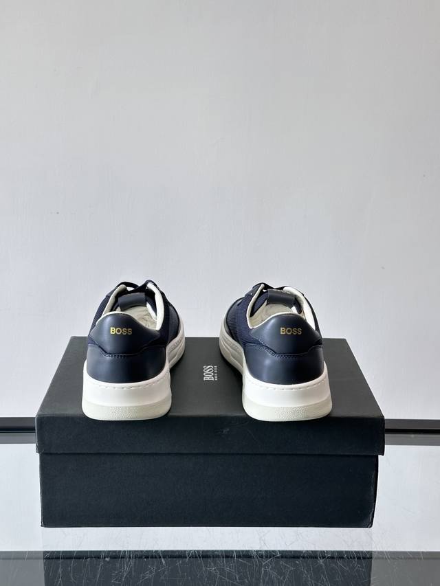 Boss复古板鞋,皮质+织物拼接,透气又耐穿,清洁超方便!厚底设计约3-4Cm,悄悄增高,日常穿搭无压力。鞋垫柔软,长时间走路也很舒服,春夏季节必备!复古+运动