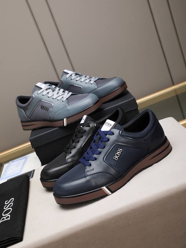 Boss男士休闲运动鞋,原版开模,鞋面采用意大利进口滴胶高弹力布面拼接材质,透气内里!上脚柔软舒适 原版Tpu发泡大底脚感柔软轻便!多色任君选! Size:38-44 45订做