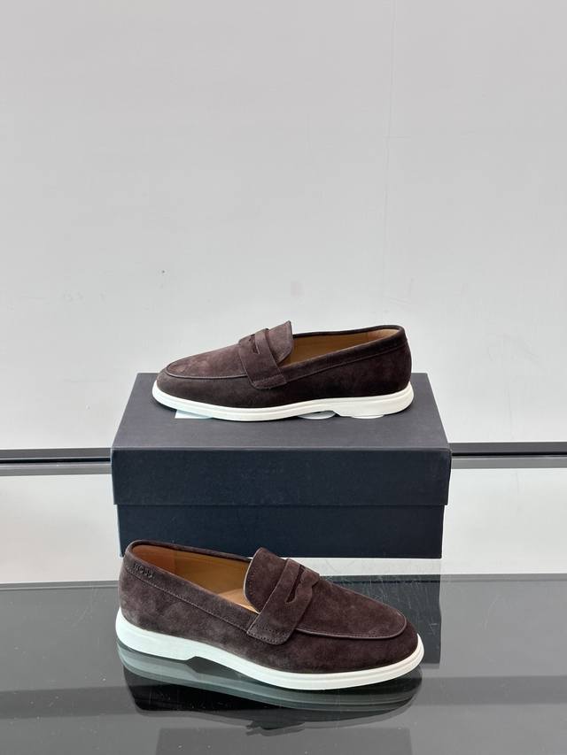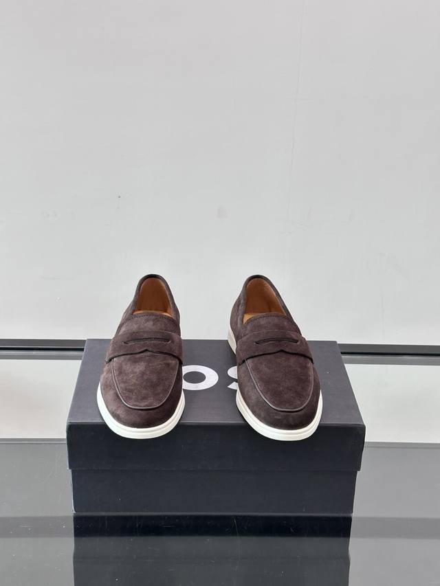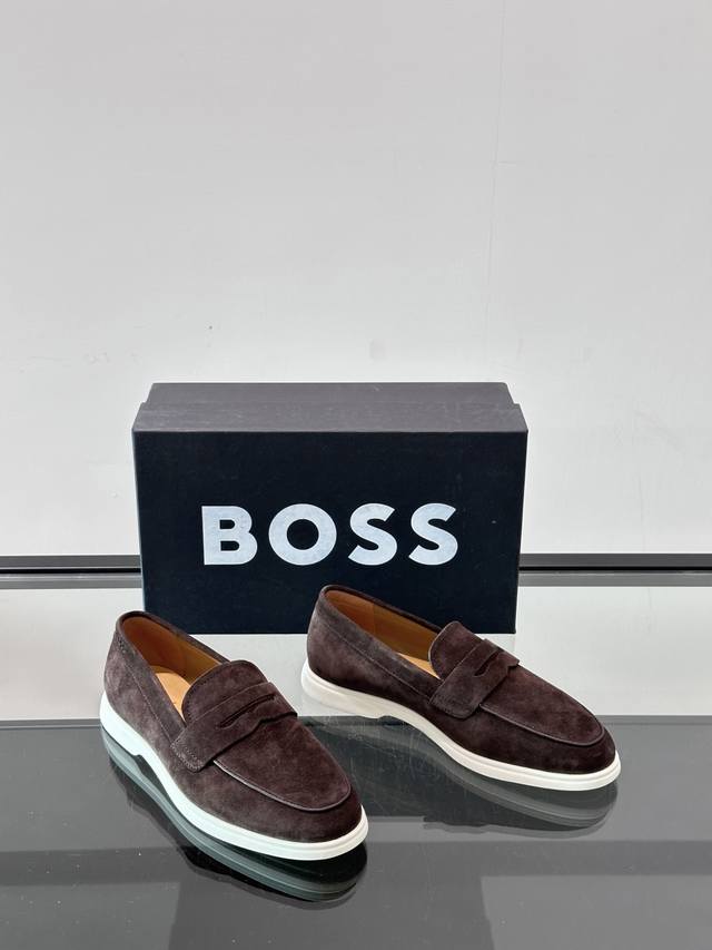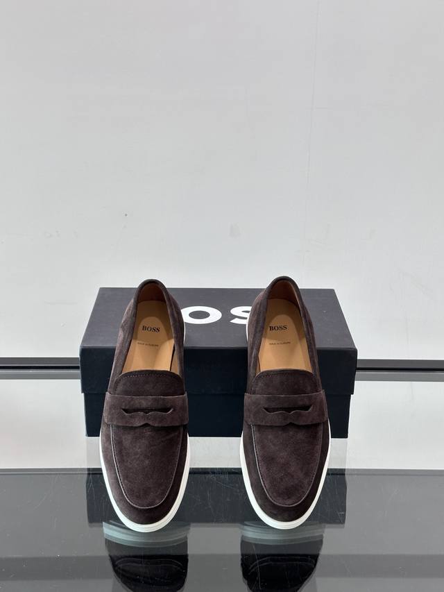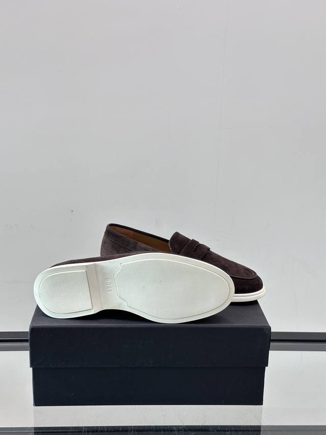 / Boss 男士新款套脚乐福鞋顶级高品!选用粒面小牛皮、麂皮面料制成,细致均匀的手工马克走线,经典乐福版型,小牛皮内里及垫脚,搭配轻质防滑耐磨橡胶大底,轻便舒适,