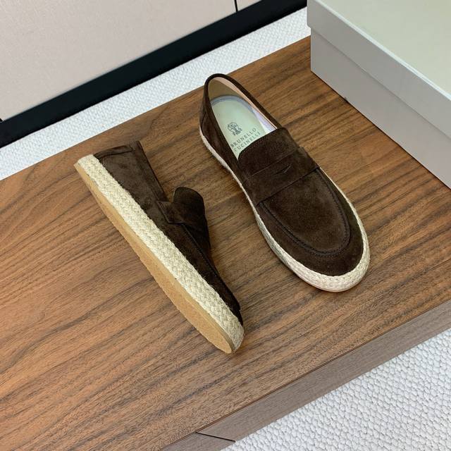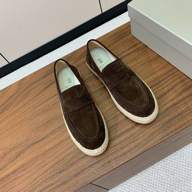 BRUNELL* CUCINELL* 男款麻绳底乐福鞋。简约时尚。鞋面牛京,牛皮内里,高密度弹力乳胶 可拆卸独立高弹力乳胶鞋垫 原版大底。